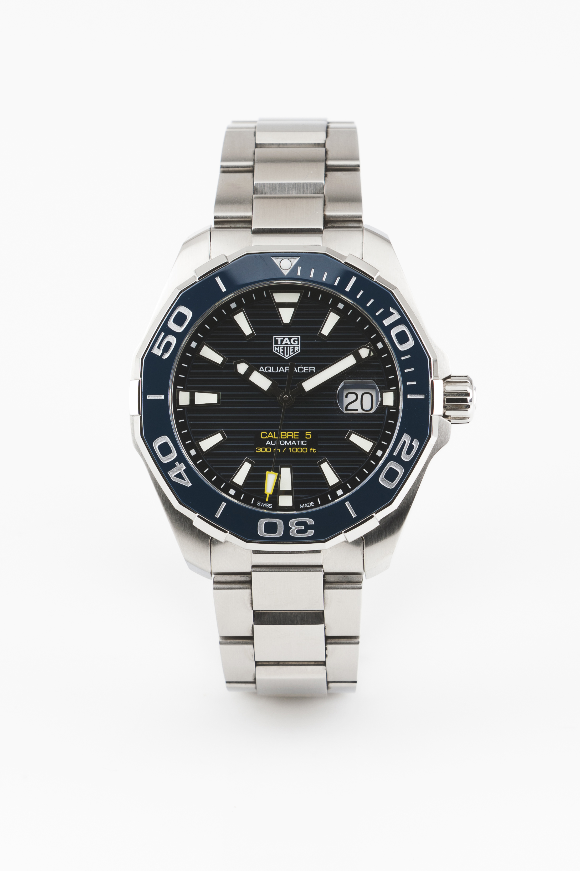 Tag Huer watch. Aqua Racer model. Automatic mechanical movement with date at 3h. Stainless steel case and bracelet. In excellent condition.