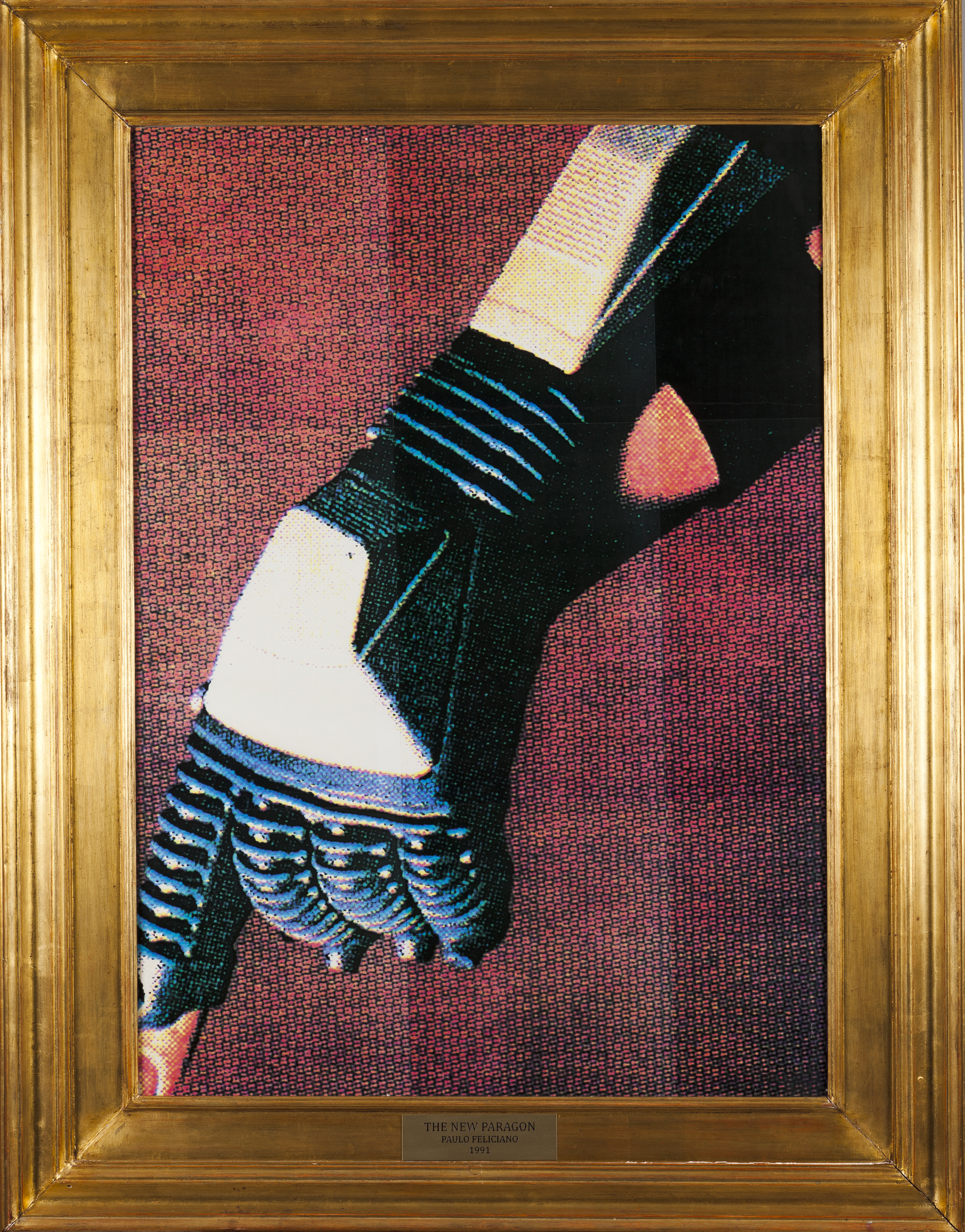 Colour photocopies, gilded wooden frame and text engraved on metal plate