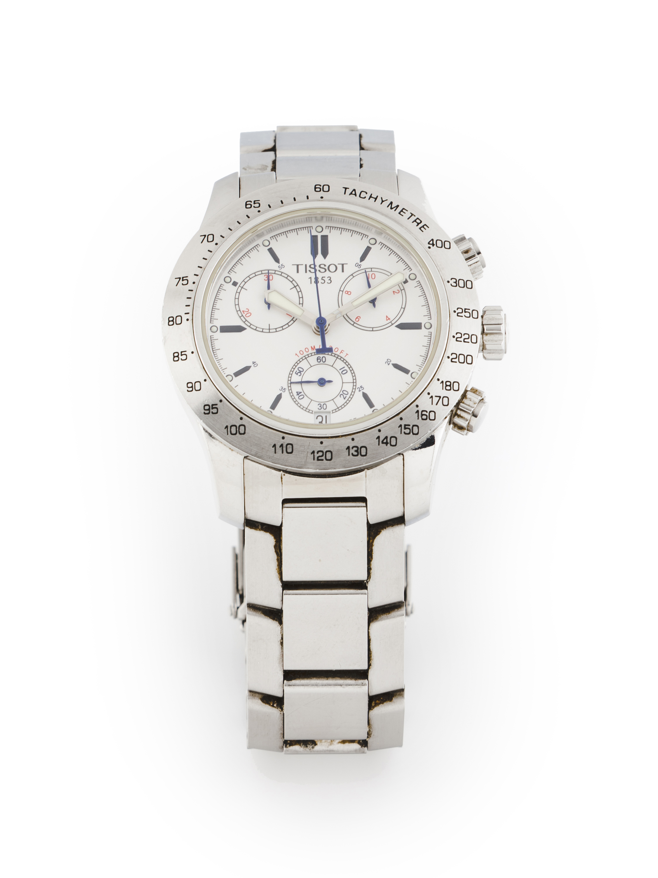 Quartz movement with chronograph function and date at 18h. Stainless steel case and wristband. With box and documents. In good condition.