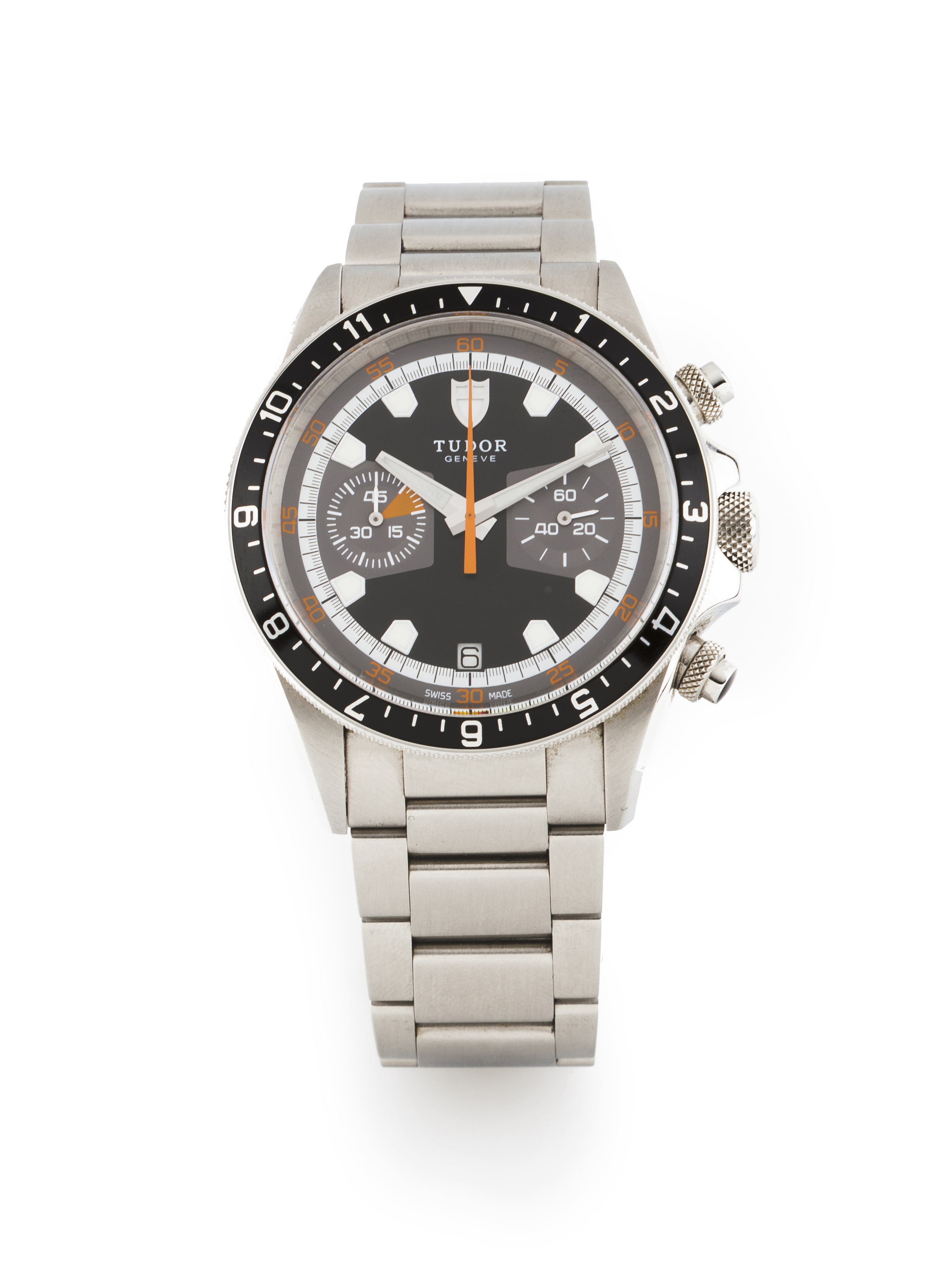 Heritage Chrono model. Automatic mechanical movement with chronograph function na date at 18h. Stainless steel case and wristband. In good condition. With documents, without box.