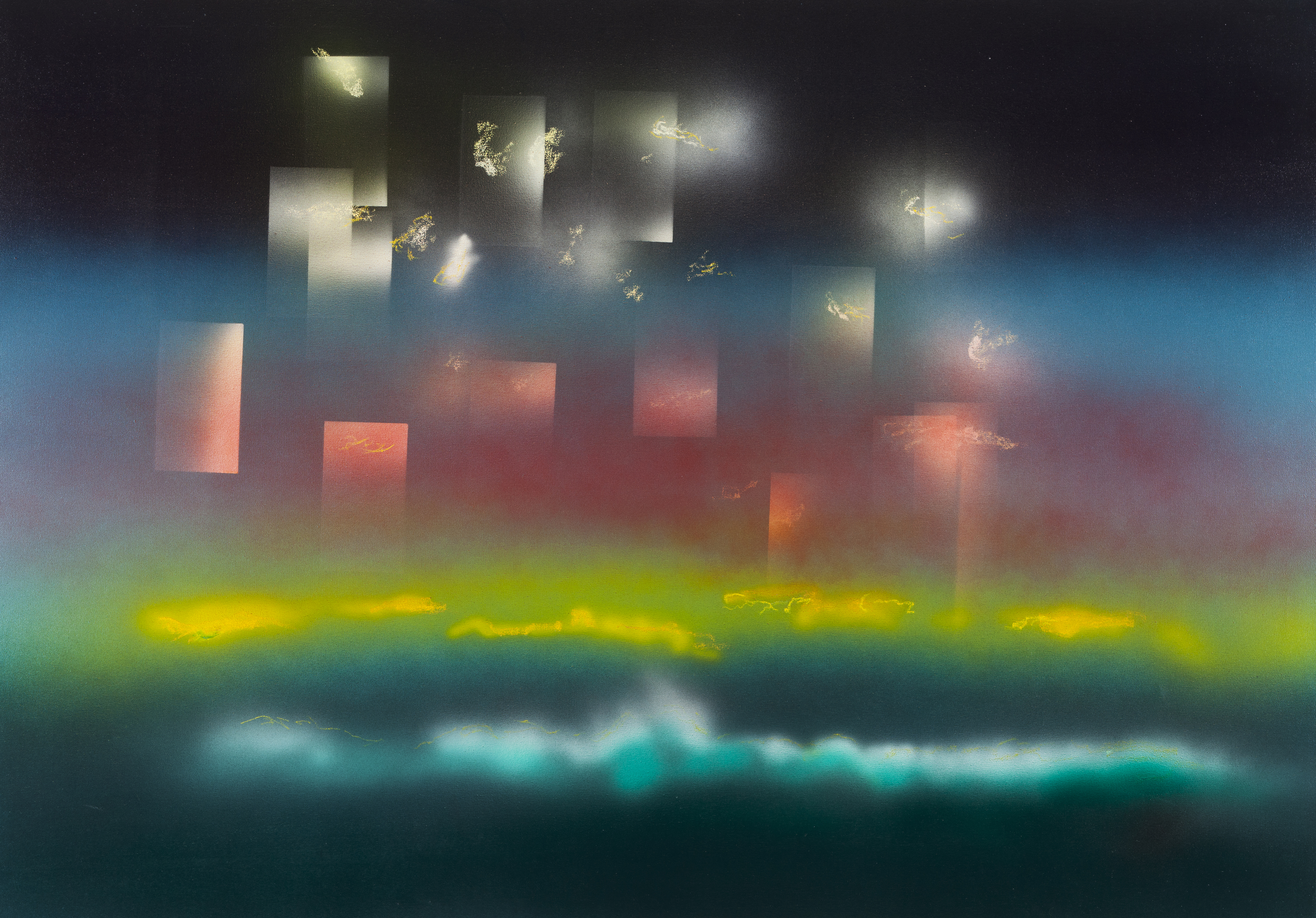Cellulose paint and oil pastel on canvas