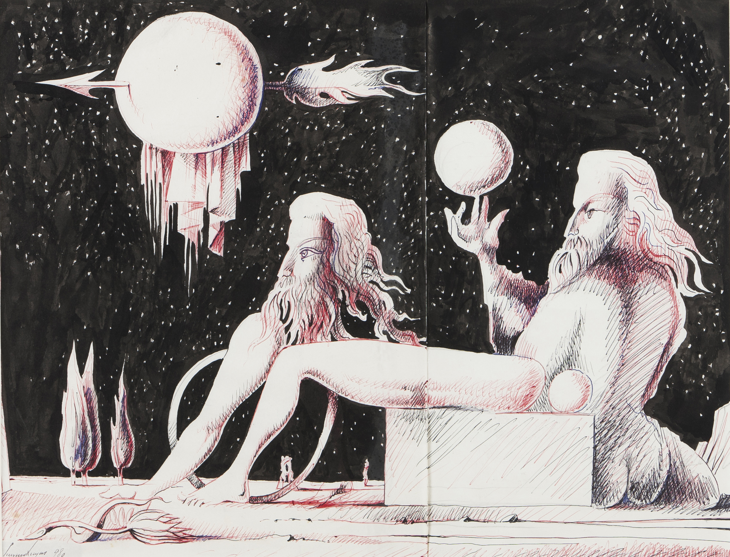 Ballpoint and ink on paper