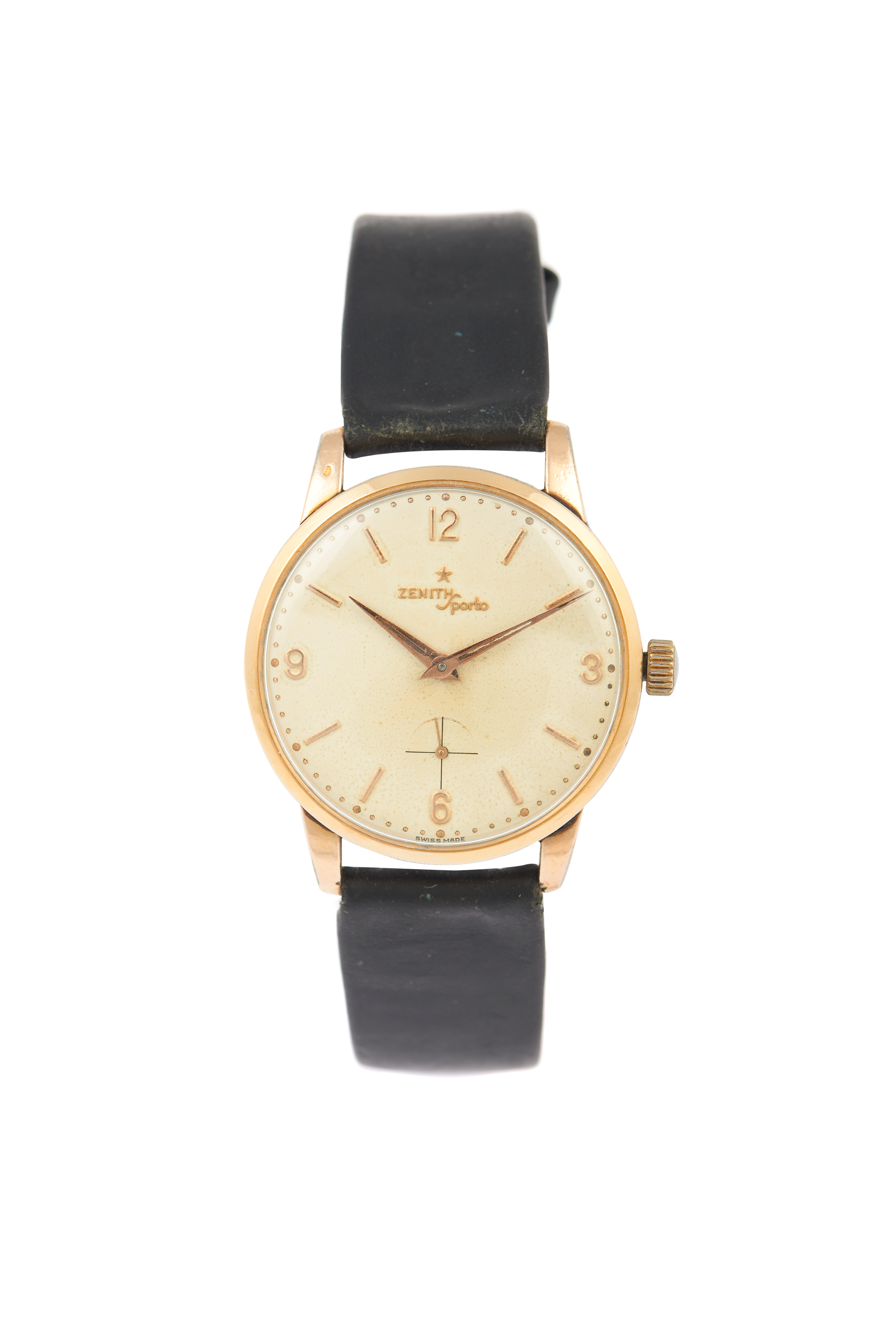 Sporto model. Winding mechanical movement with serial number 4719510 and with dust cover. Yellow gold plated case with stainless steel back with the ref. nº 9349910. With wear signs.