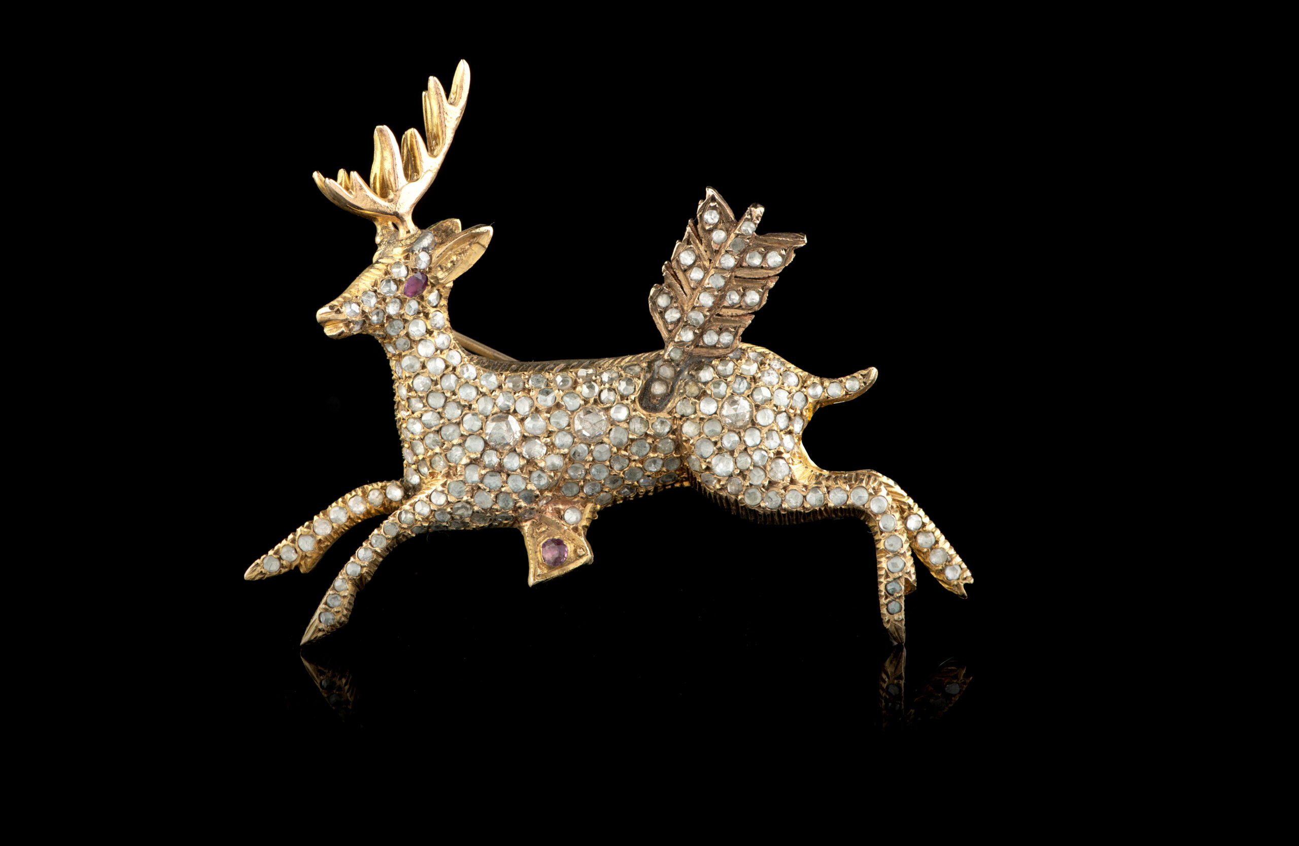 Cravejado com diamantes em talhe rosa e um rubi
