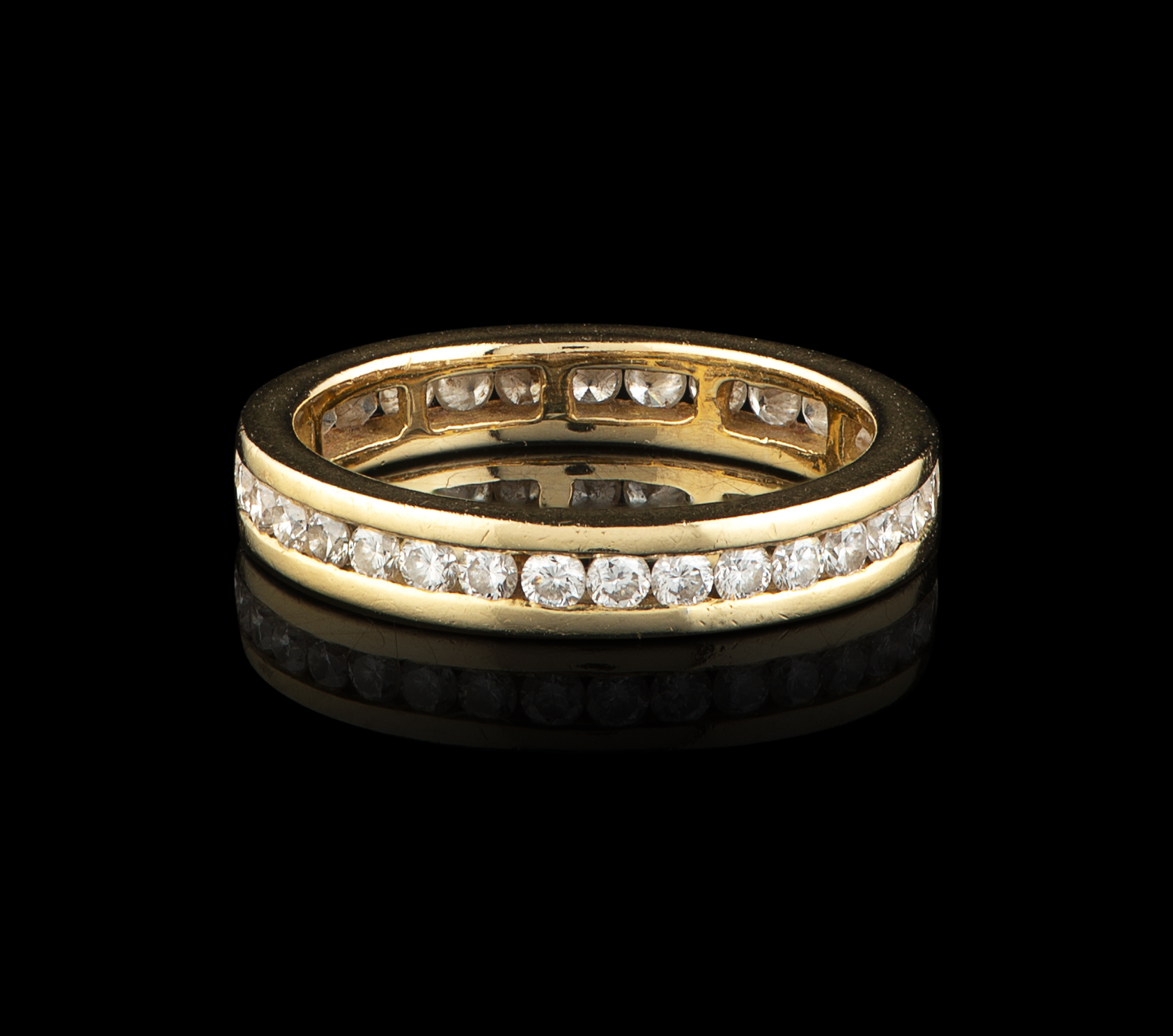 Cravejada com 32 diamantes em talhe de brilhante com o peso aproximado de 0,96 ct.