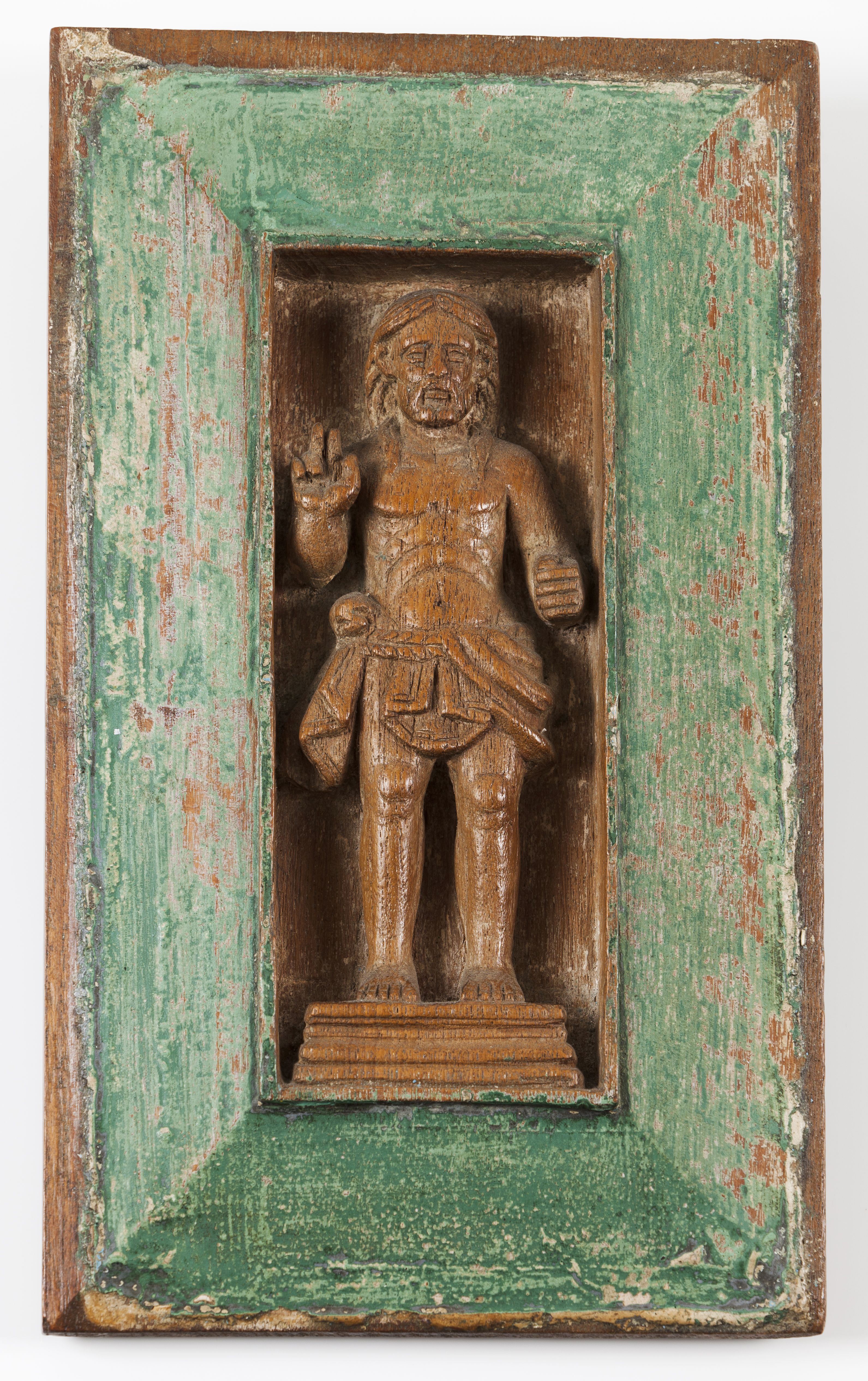 Ao centro com alto relevo representando Jesus Cristo Salvador do Mundo