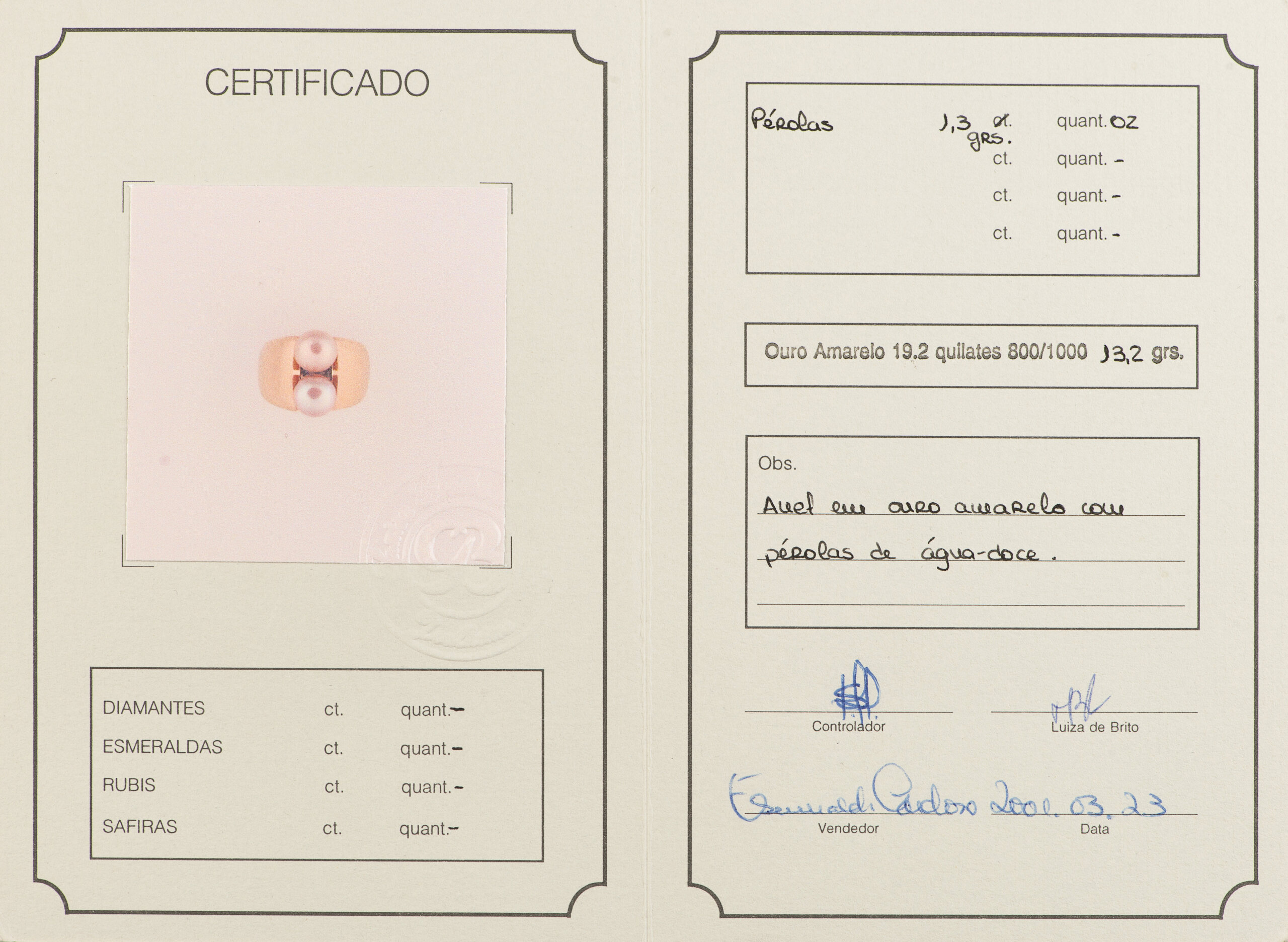 (com certificado Luíza de Brito, joalheiros)