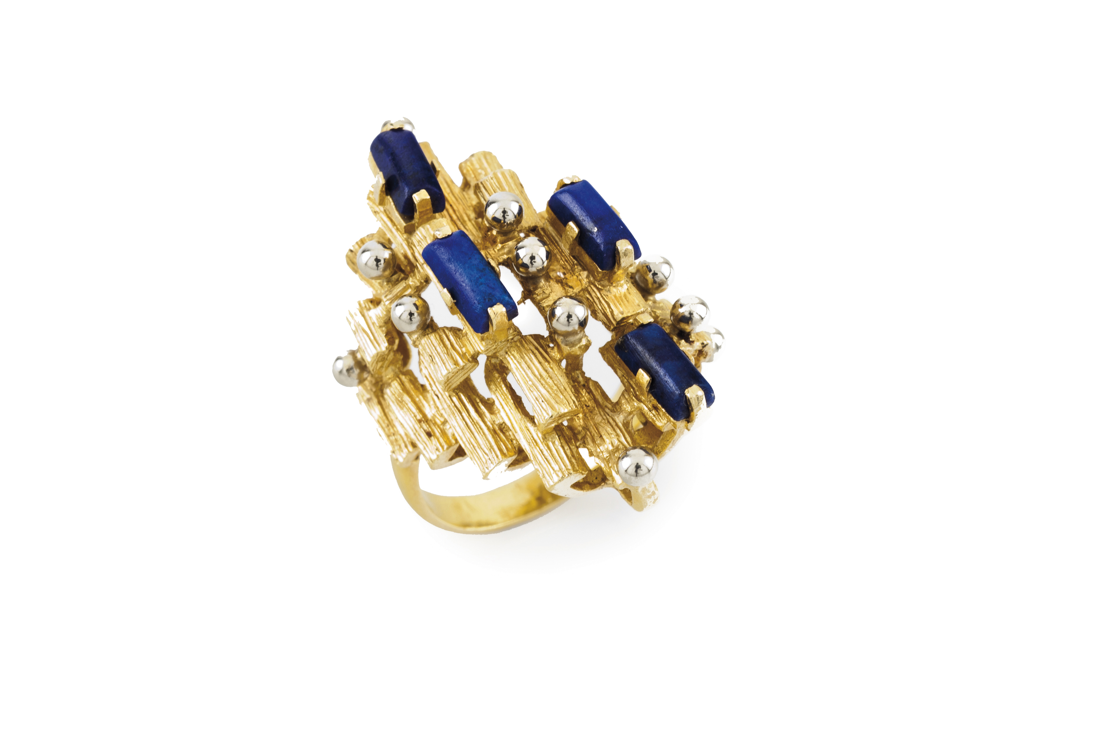 Design modernista moldado e cinzelado cravejado com elementos cilíndricos em pasta de vidro azul