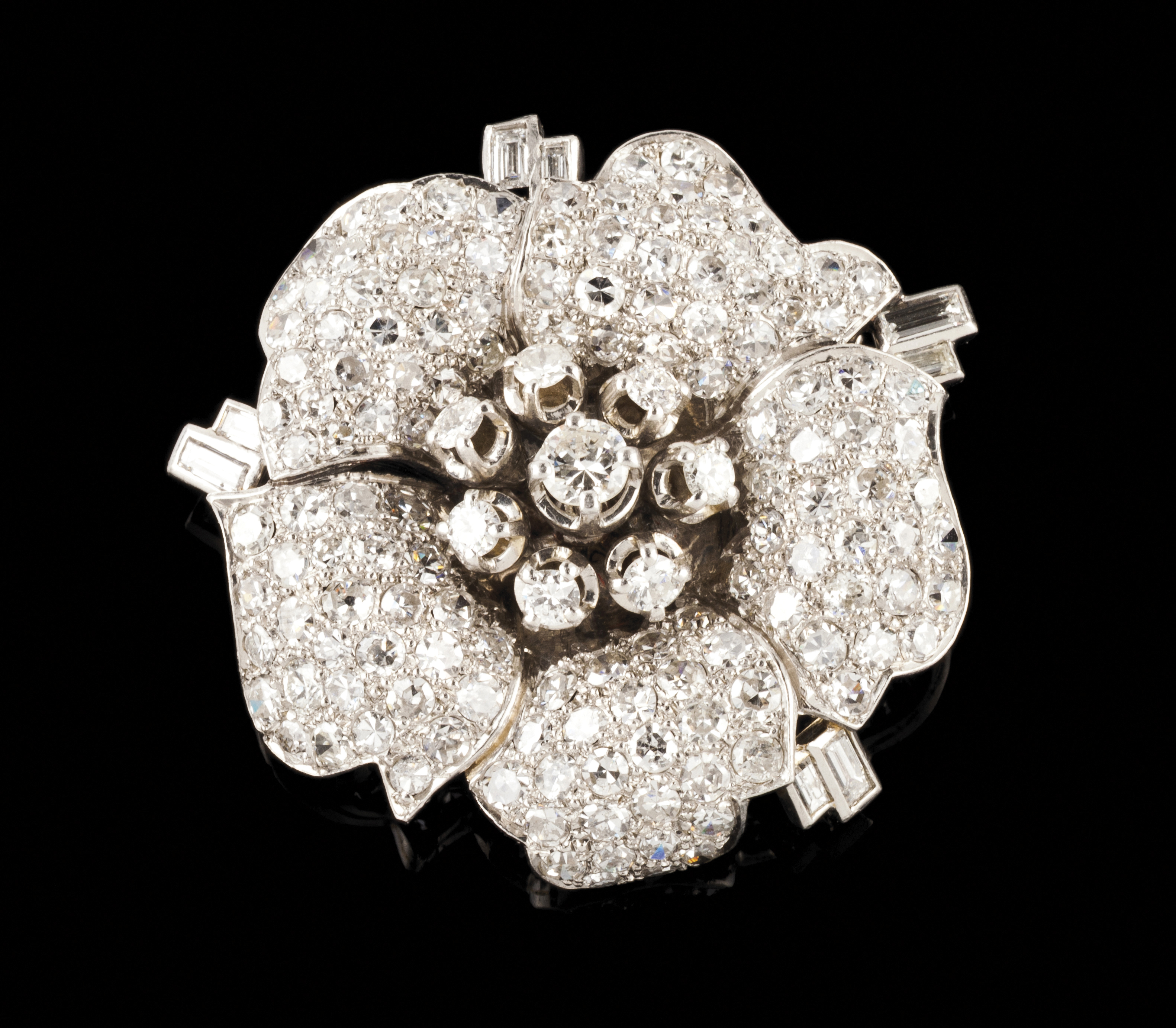 Em ouro branco cravejado com 148 diamantes talhe 8/8 e brilhante e 8 diamantes talhe baguette (ca. 3,58ct)