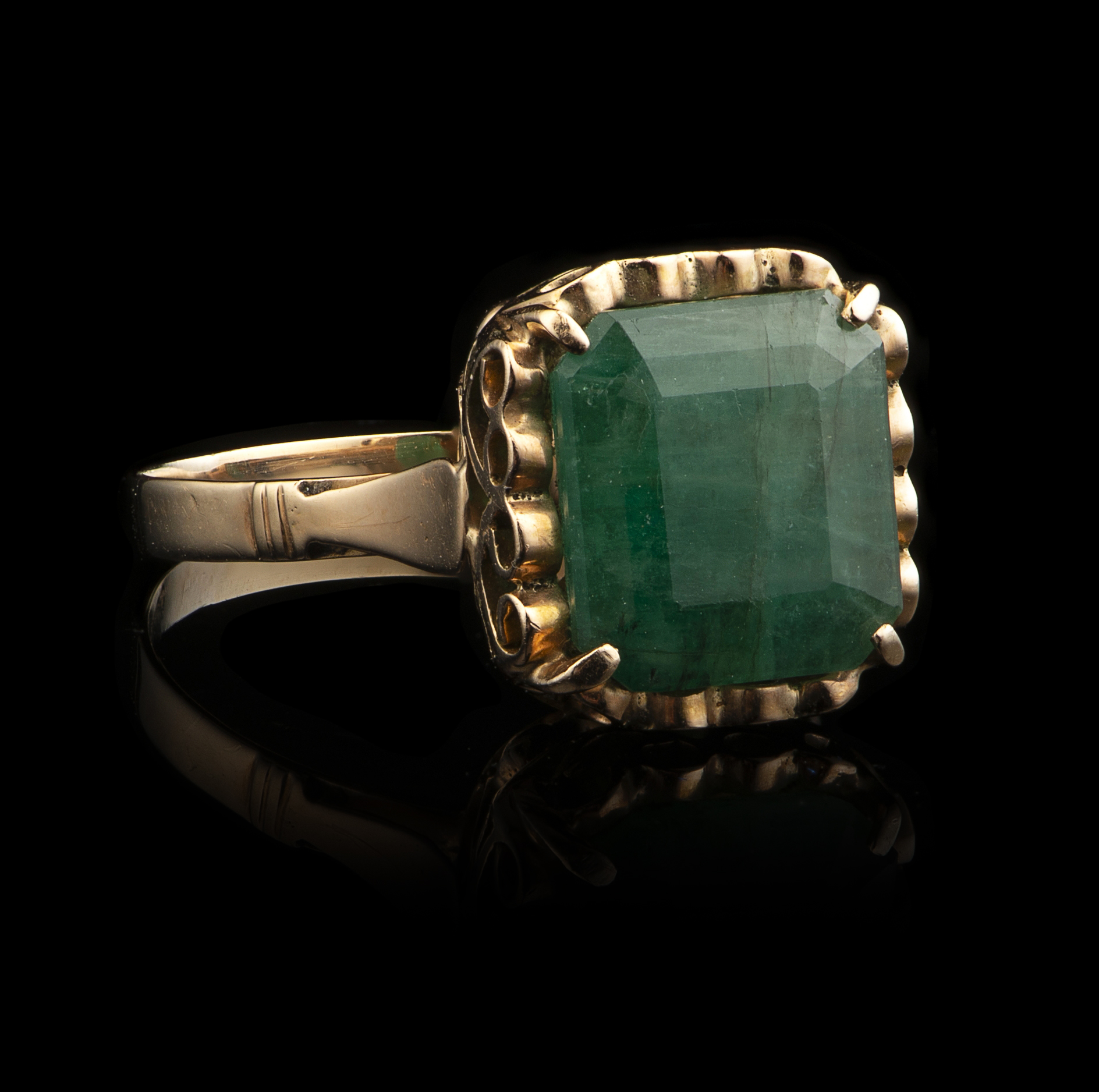 Cravejado com esmeralda com o peso aproximado de 3,67 ct.