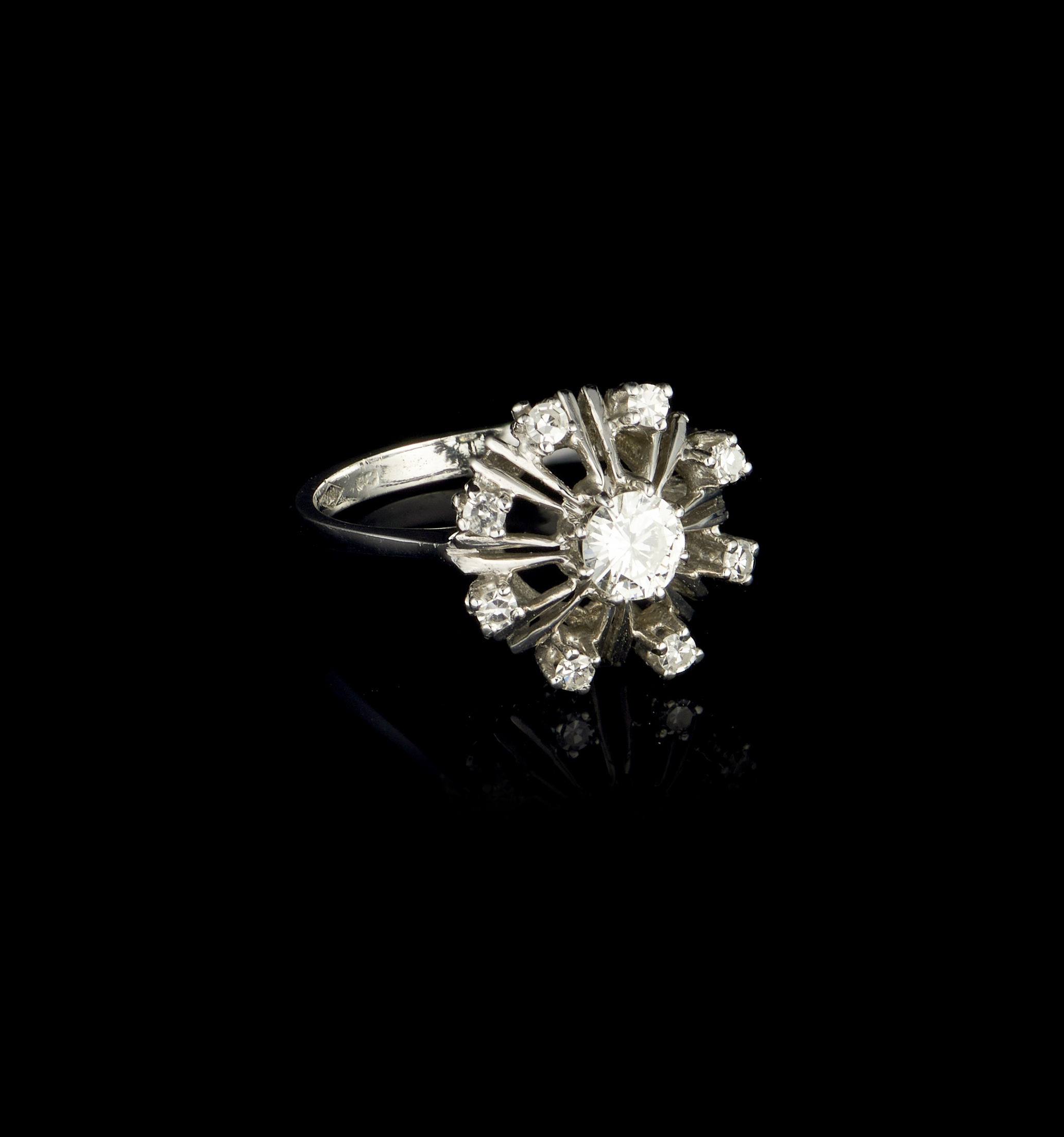 Cravejado com 9 diamantes em talhe de brilhante com o peso aproximado de 0,50 ct.