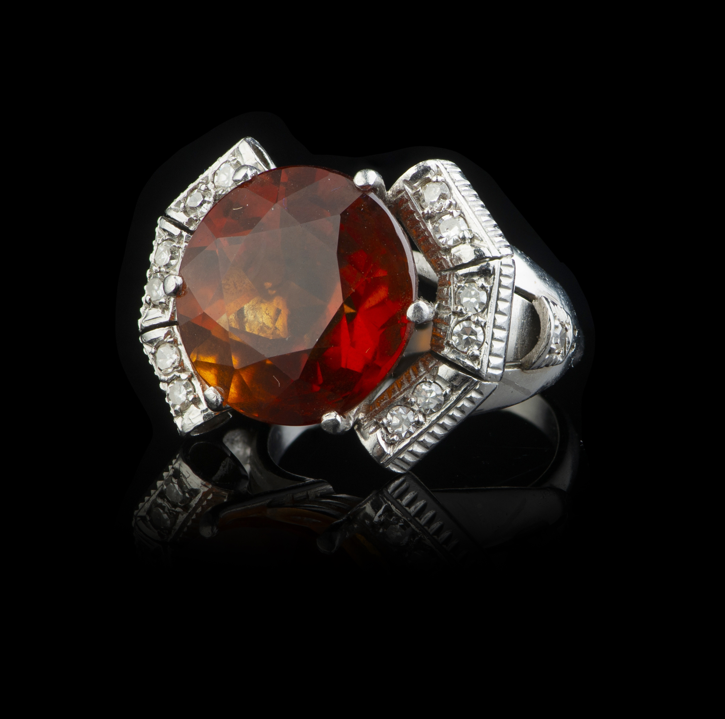 Cravejado com citrino em talhe redondo e 14 diamantes em talhe 8/8 com o peso aproximado de 0,42 ct.