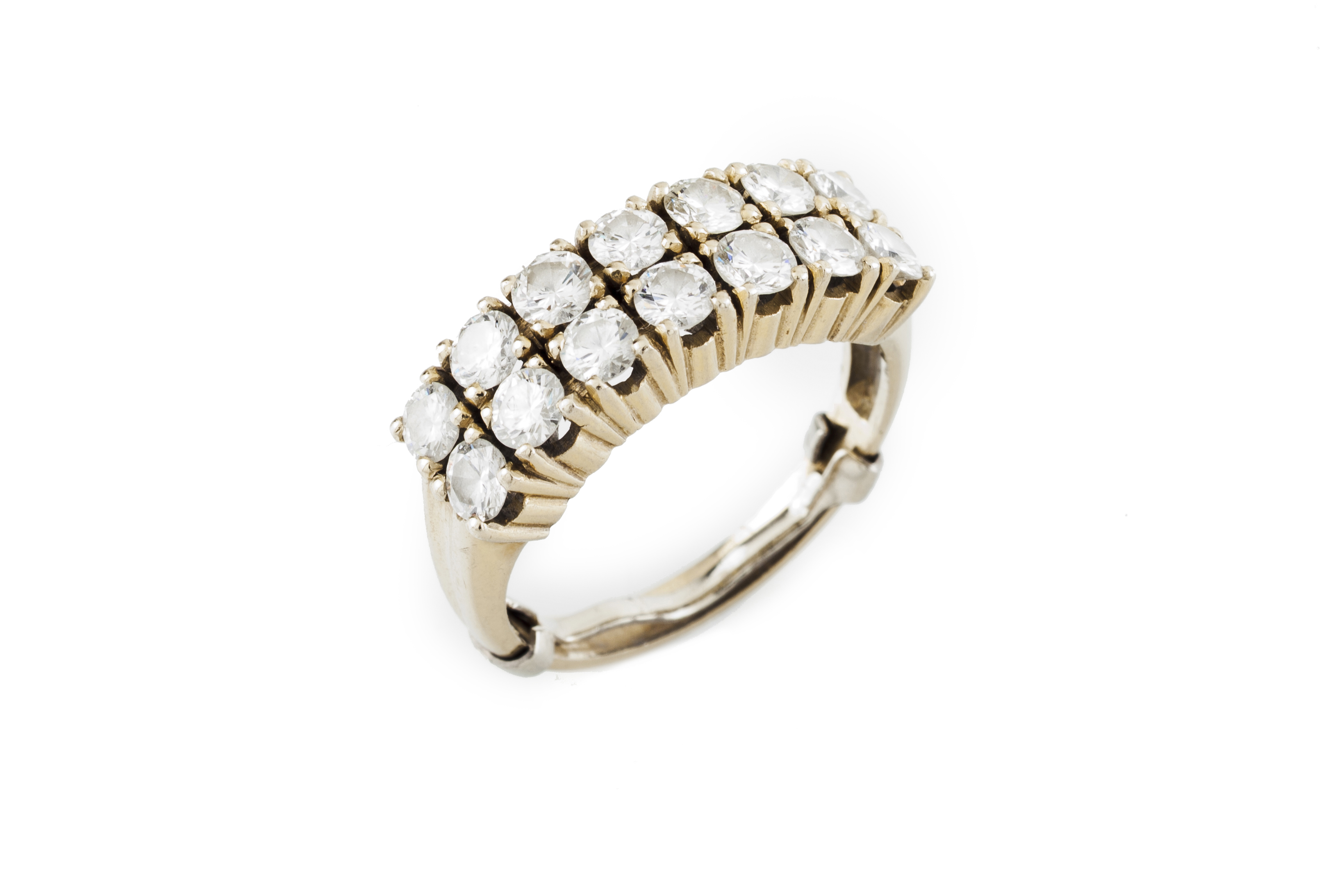 Cravejado com dois frisos de 14 diamantes em talhe de brilhante com total (ca 1.20ct) de cor branca