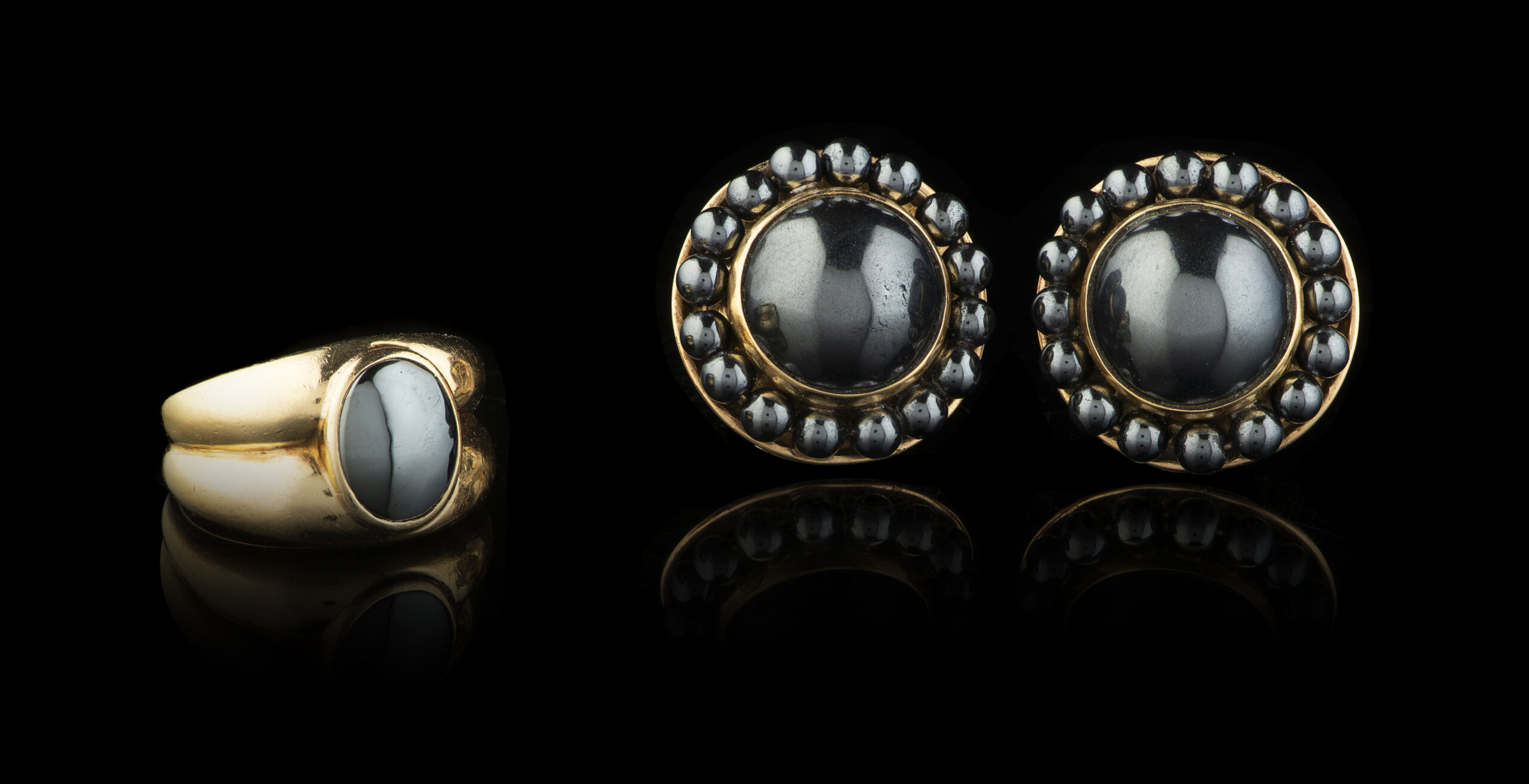 Anel em ouro de 585/000 e brincos em ouro de 800/000