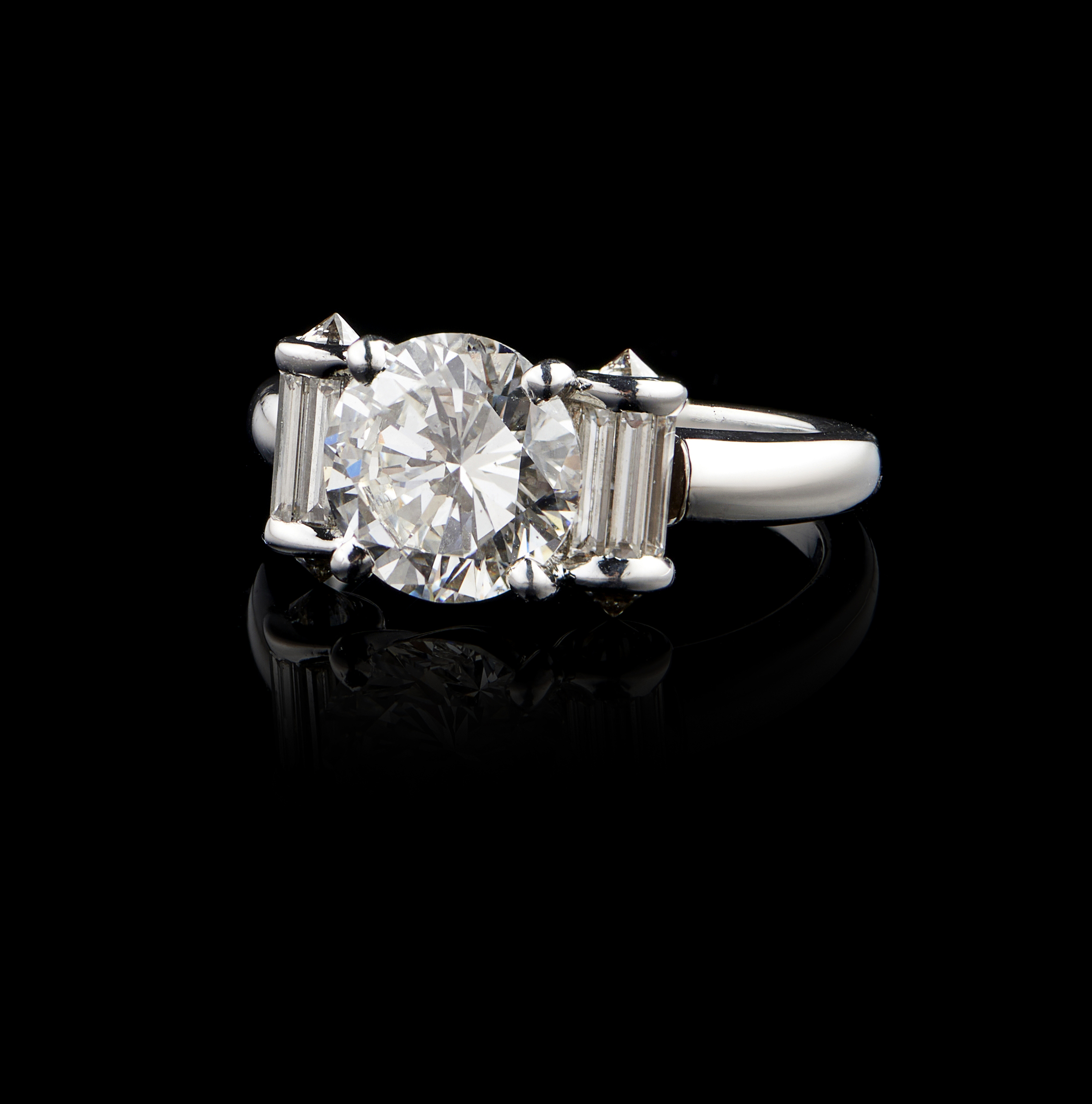 Cravejado com 6 baguetes e 5 em talhe de brilhante