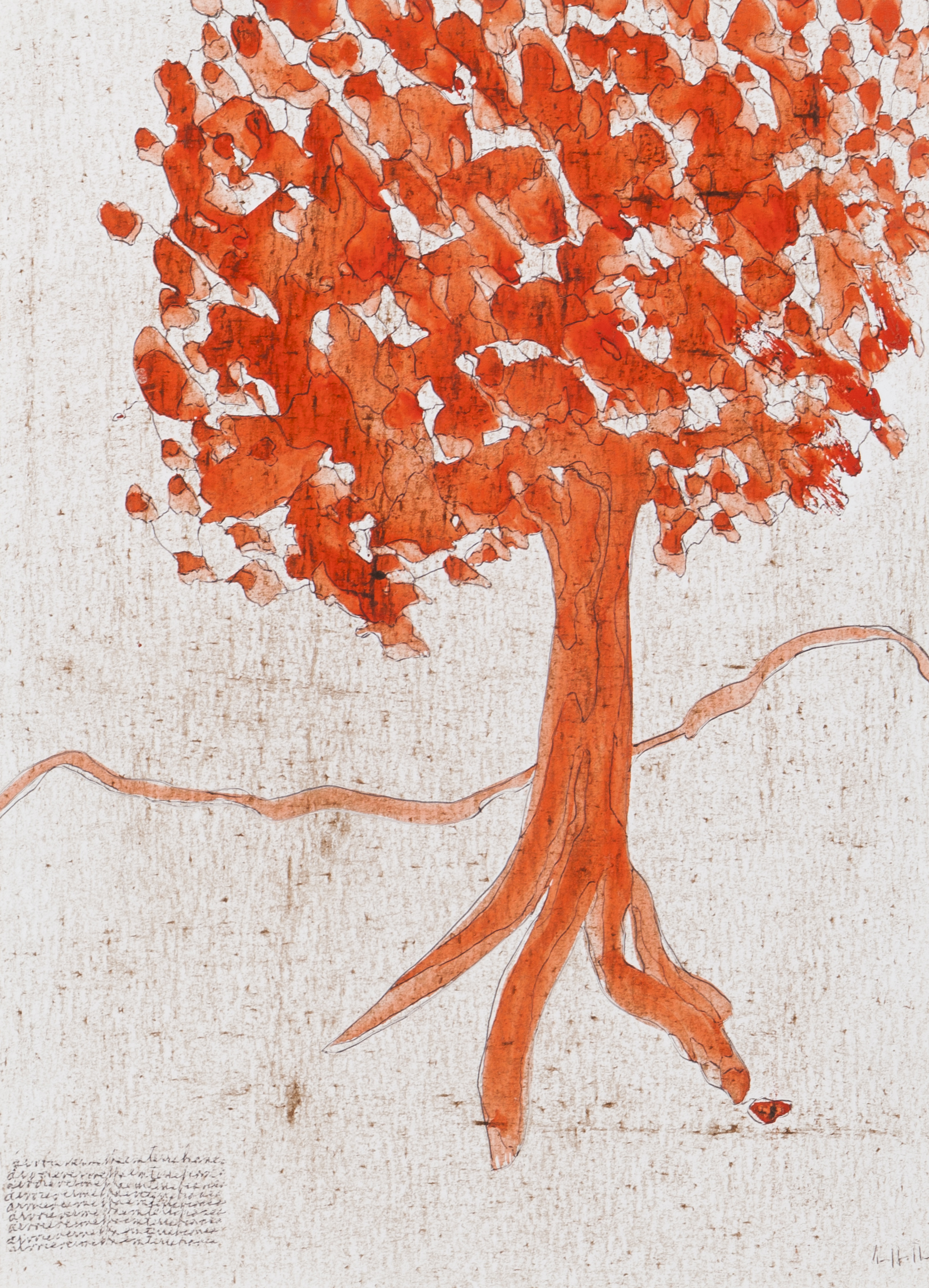 "Árvore vermelha em terra branca"