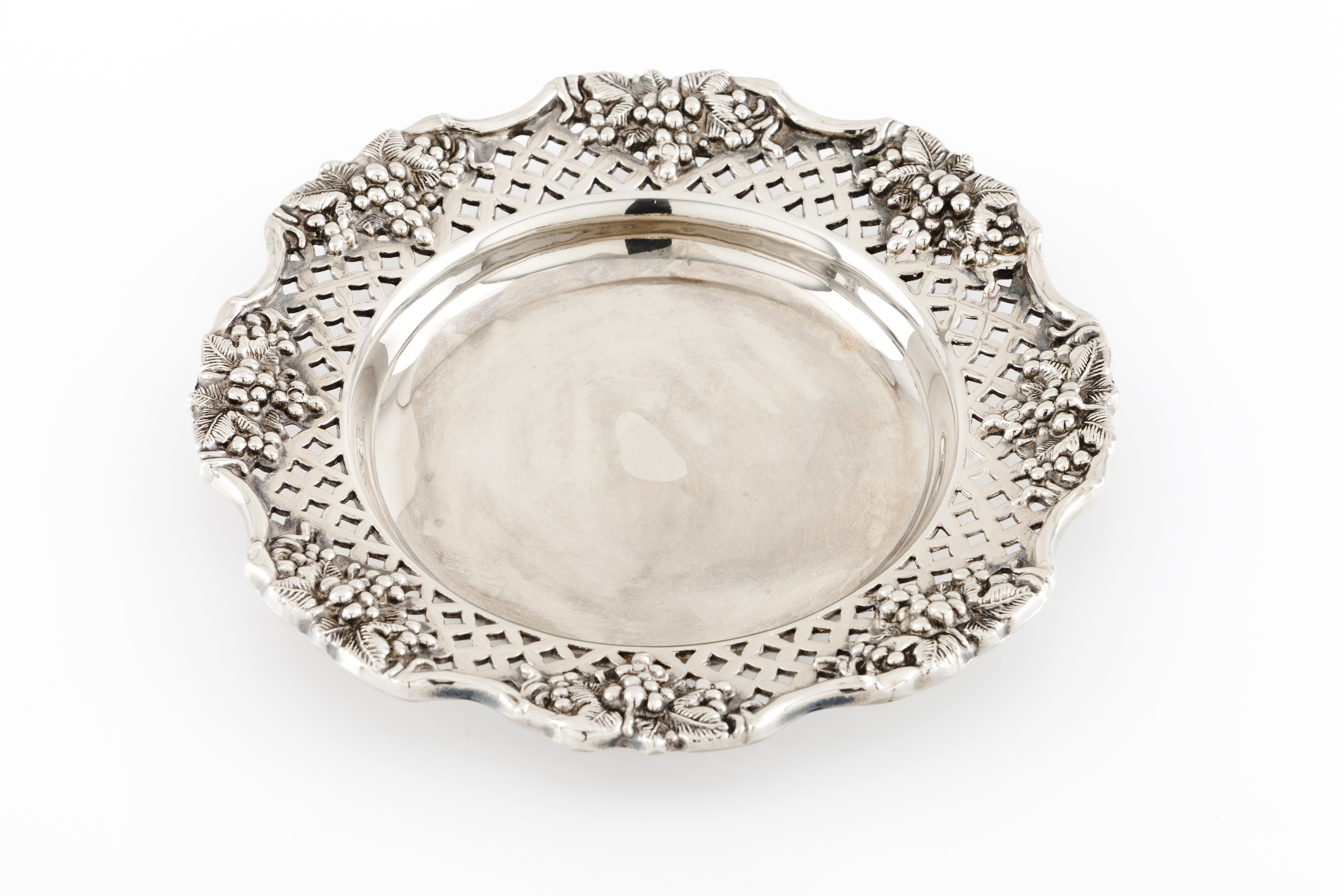 Casquinha com decoração vazada com parras, marcada" Godinger Silver"