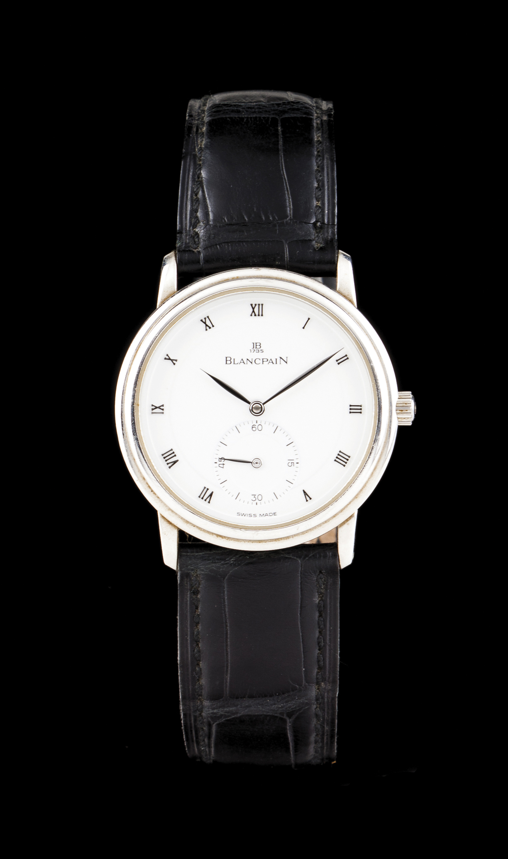 Relógio marca Blancpain, série limitada de apenas 100 relógios, sendo este o Nº34. Movimento mecânico de corda manual. Caixa em platina (950). Acompanha estojo e documentação. Em bom estado de conservação.
