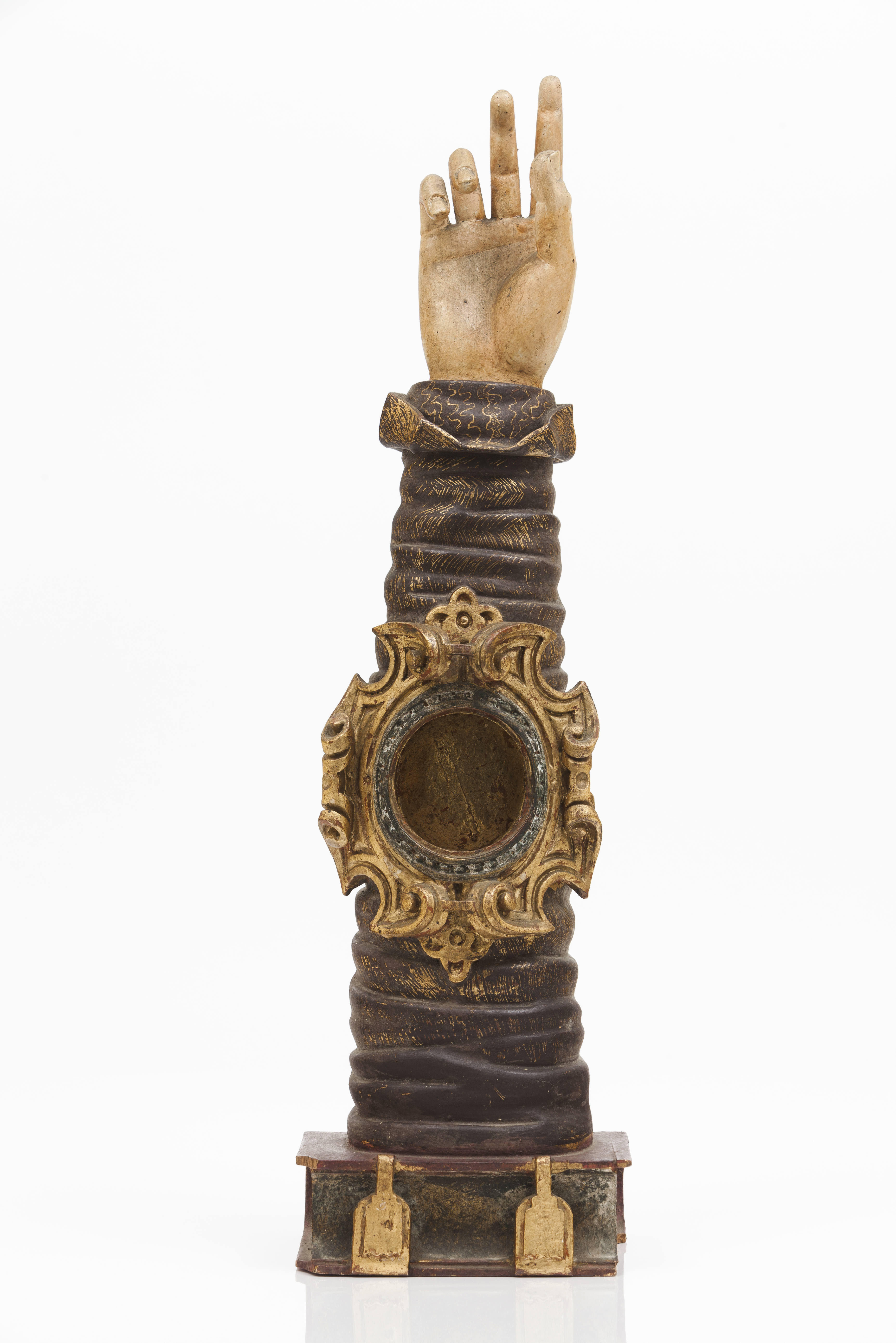 Moldura do receptáculo da relíquia entalhada em forma de cartela barroca