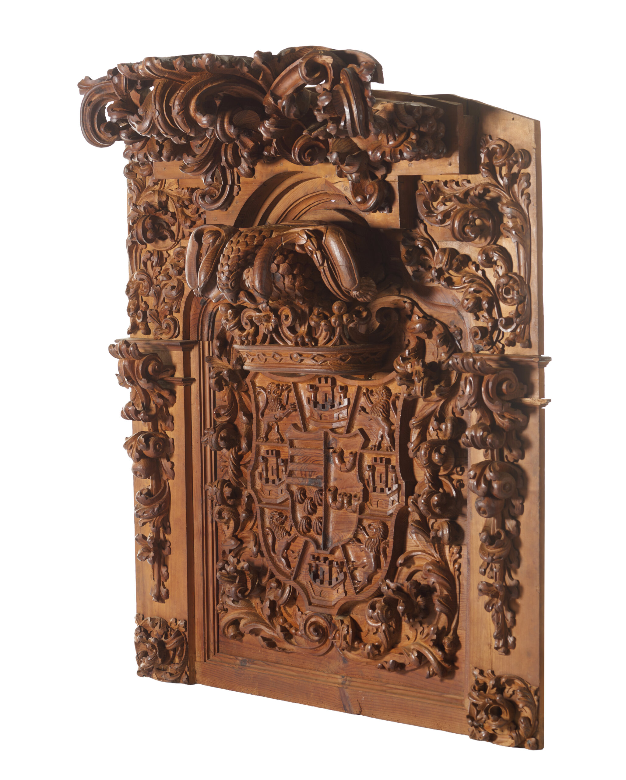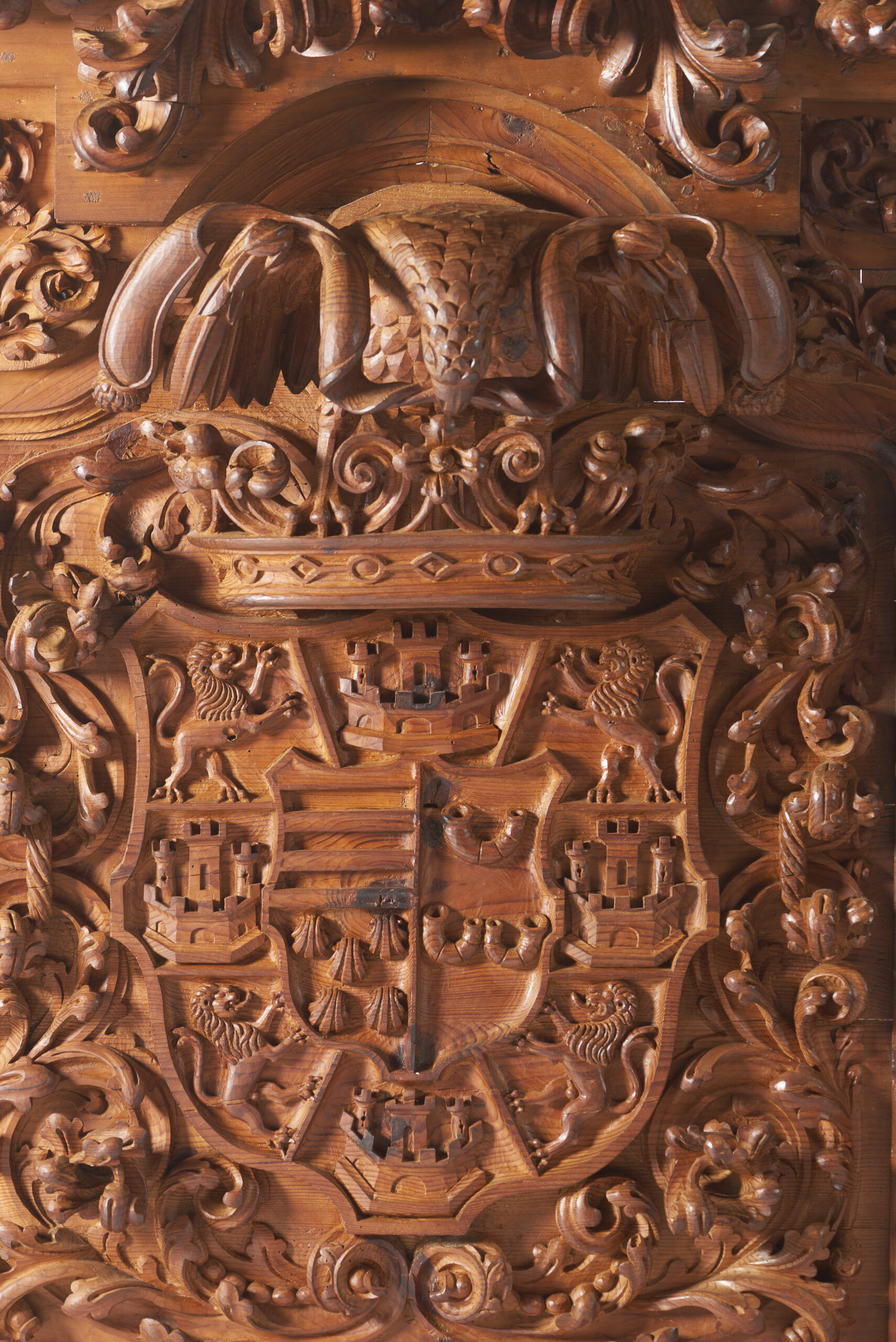 Decoração entalhada representando enrolamentos de folhas de acanto