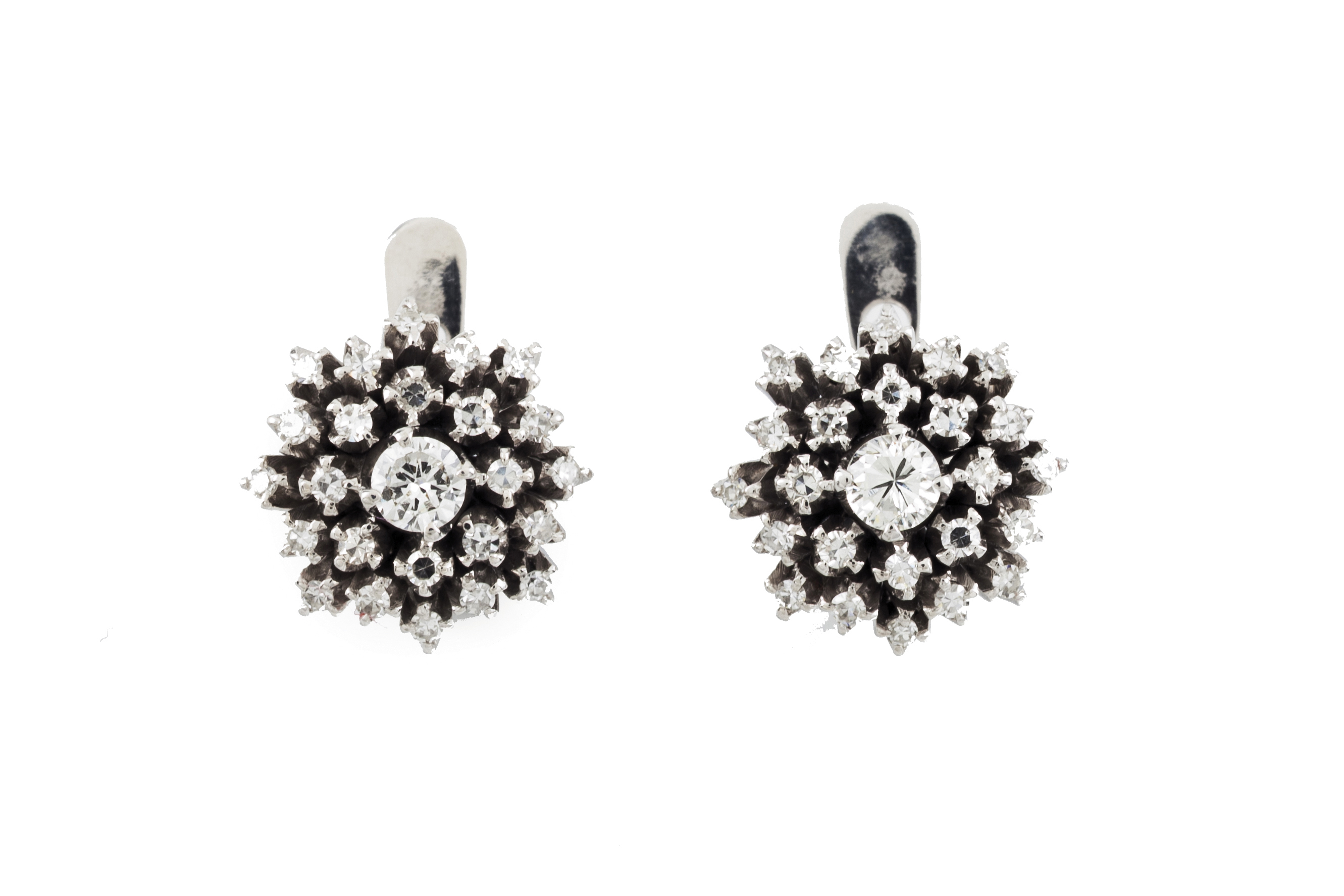 Em forma de flor estilizada cravejados com 56 diamantes em talhe de brilhante com total (ca. 1.10ct)