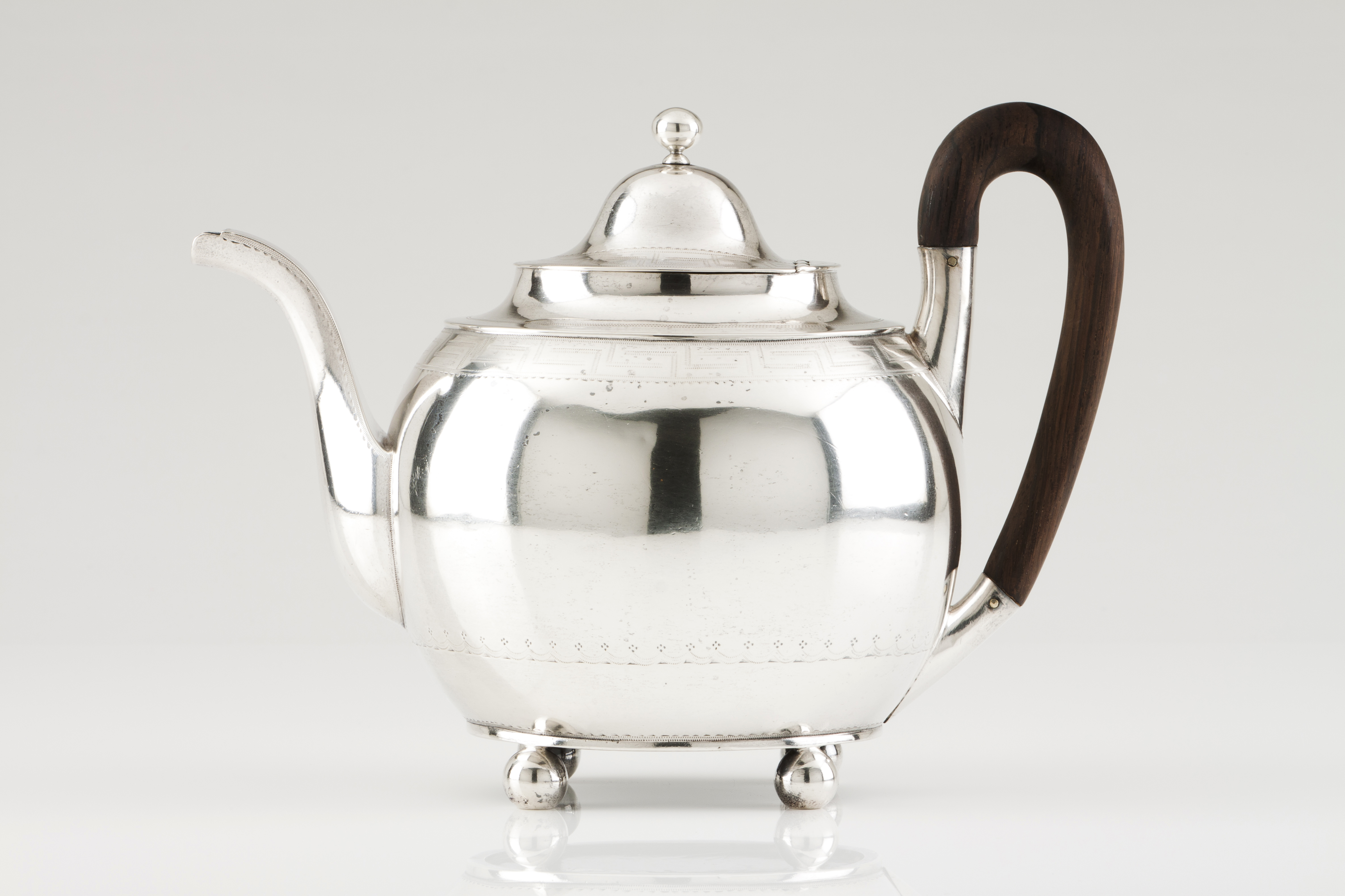 Bojo liso com frisos cinzelados e pega em madeira torneada