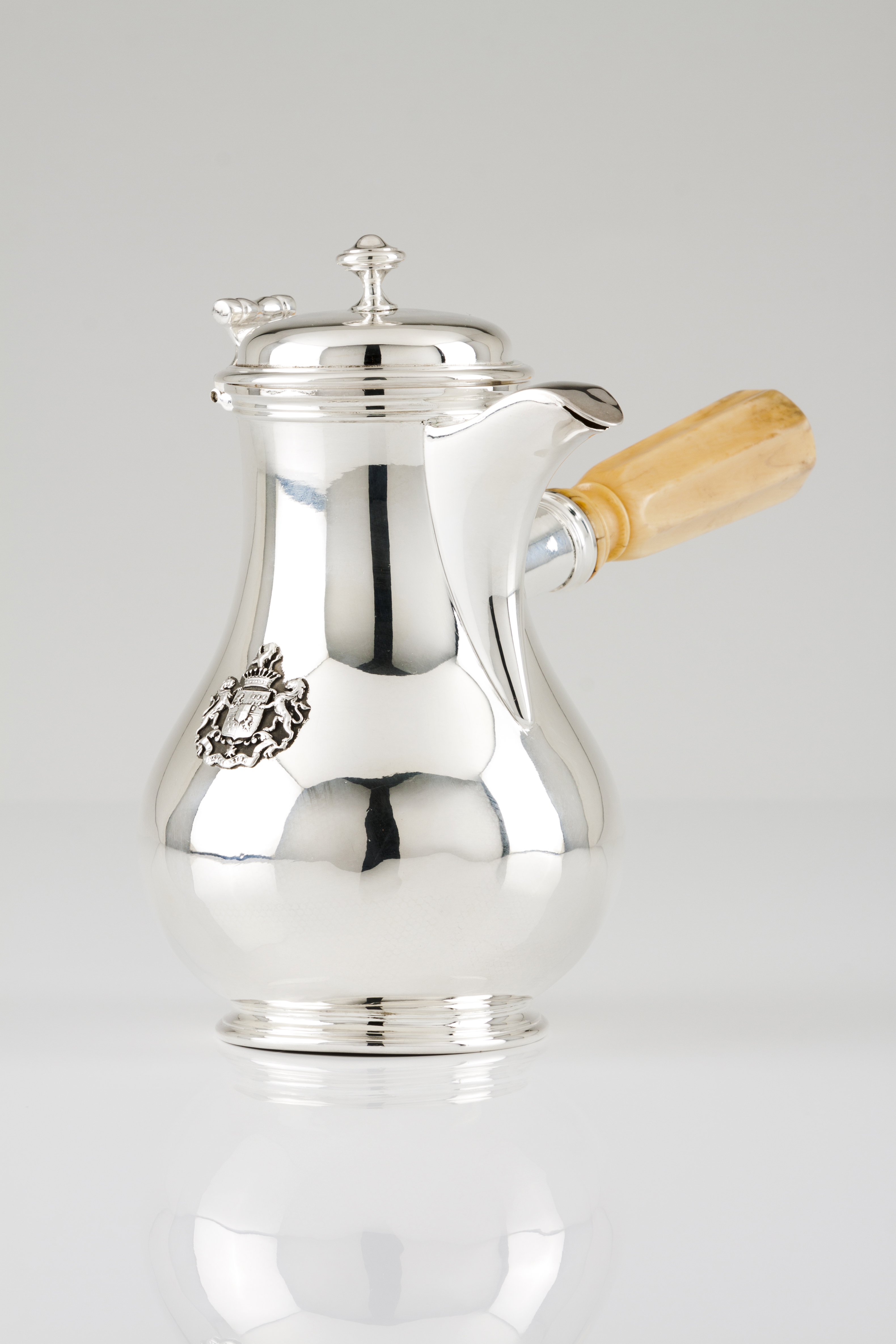 Formato de pera com pega de balaústre e aplicação com escudo de armas para Girard du Demaine, com leões, coroa de conde a moto Crux, decus et spes