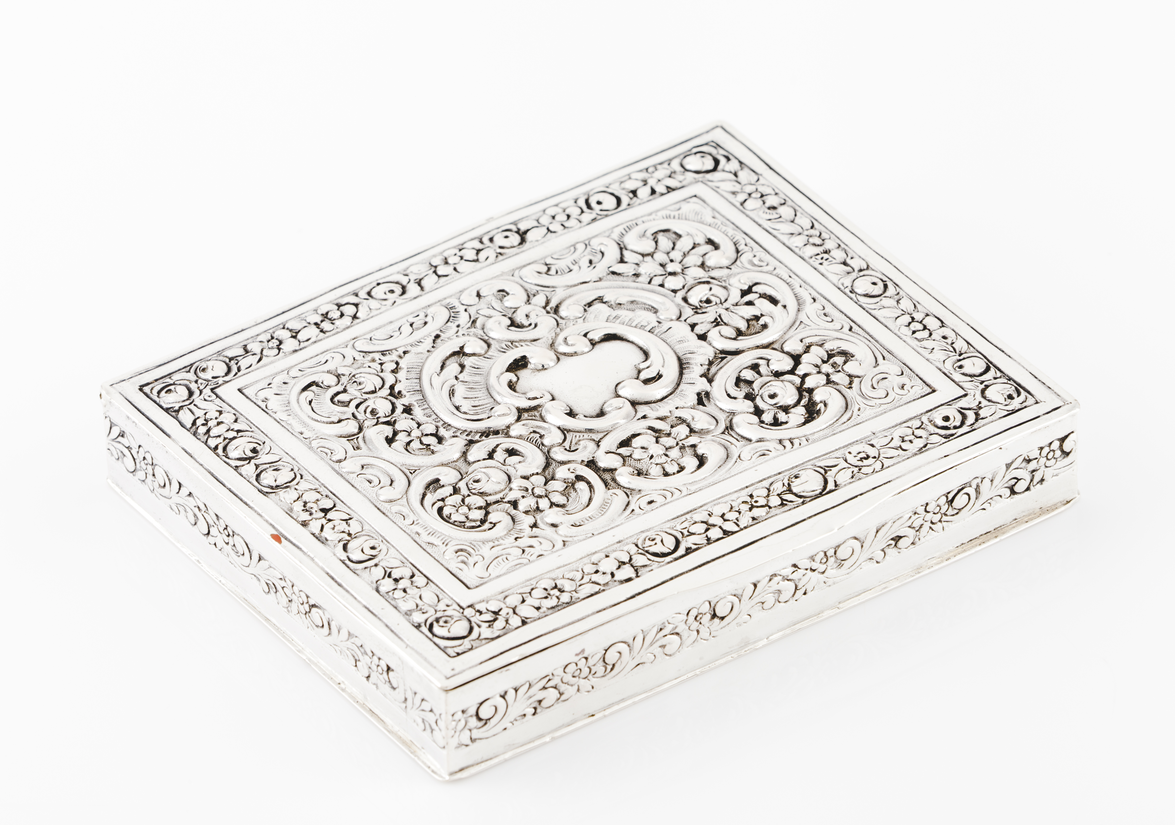 decoração relevada com folhagens e cartelas