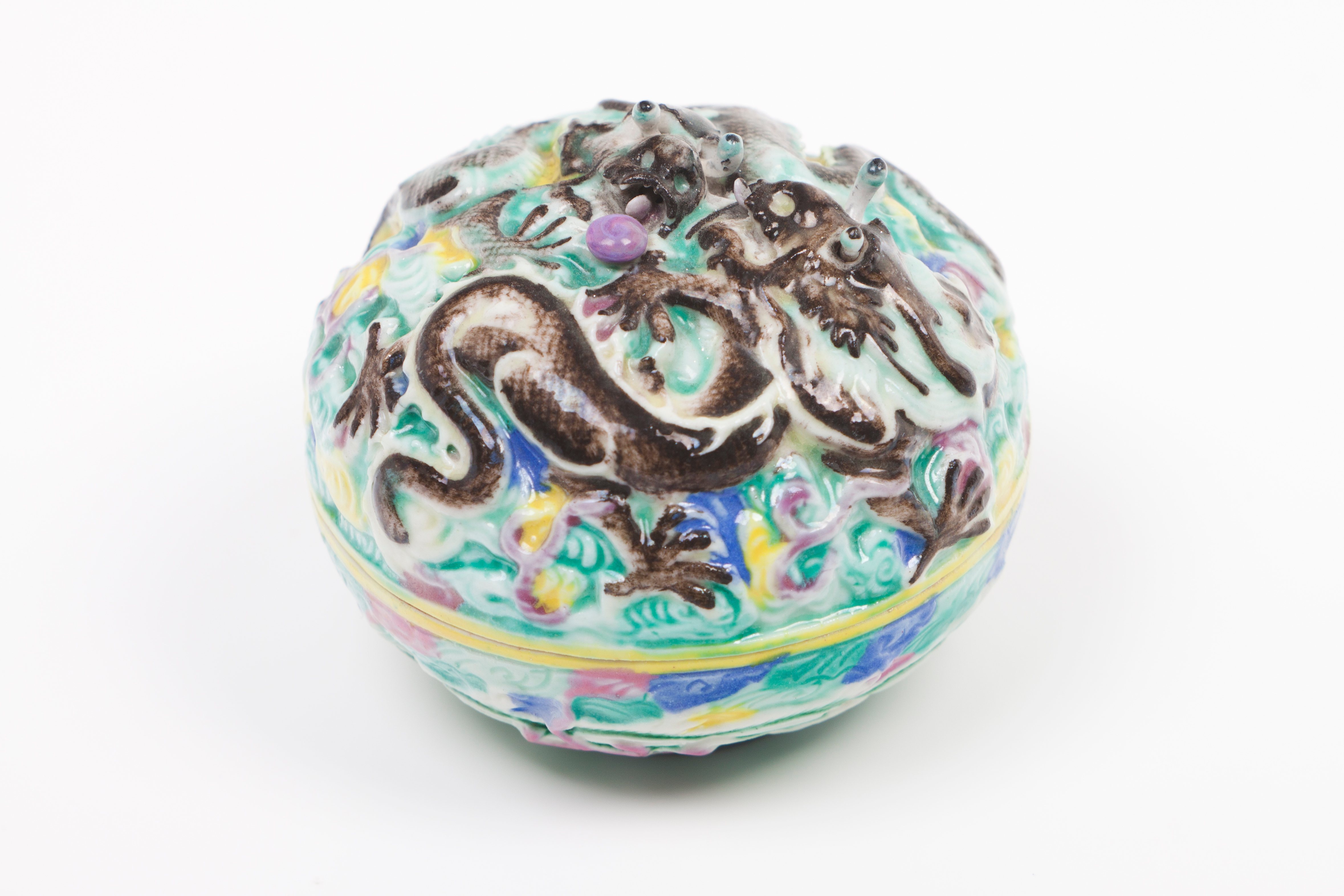 Decoração policromada e relevada representando dragões