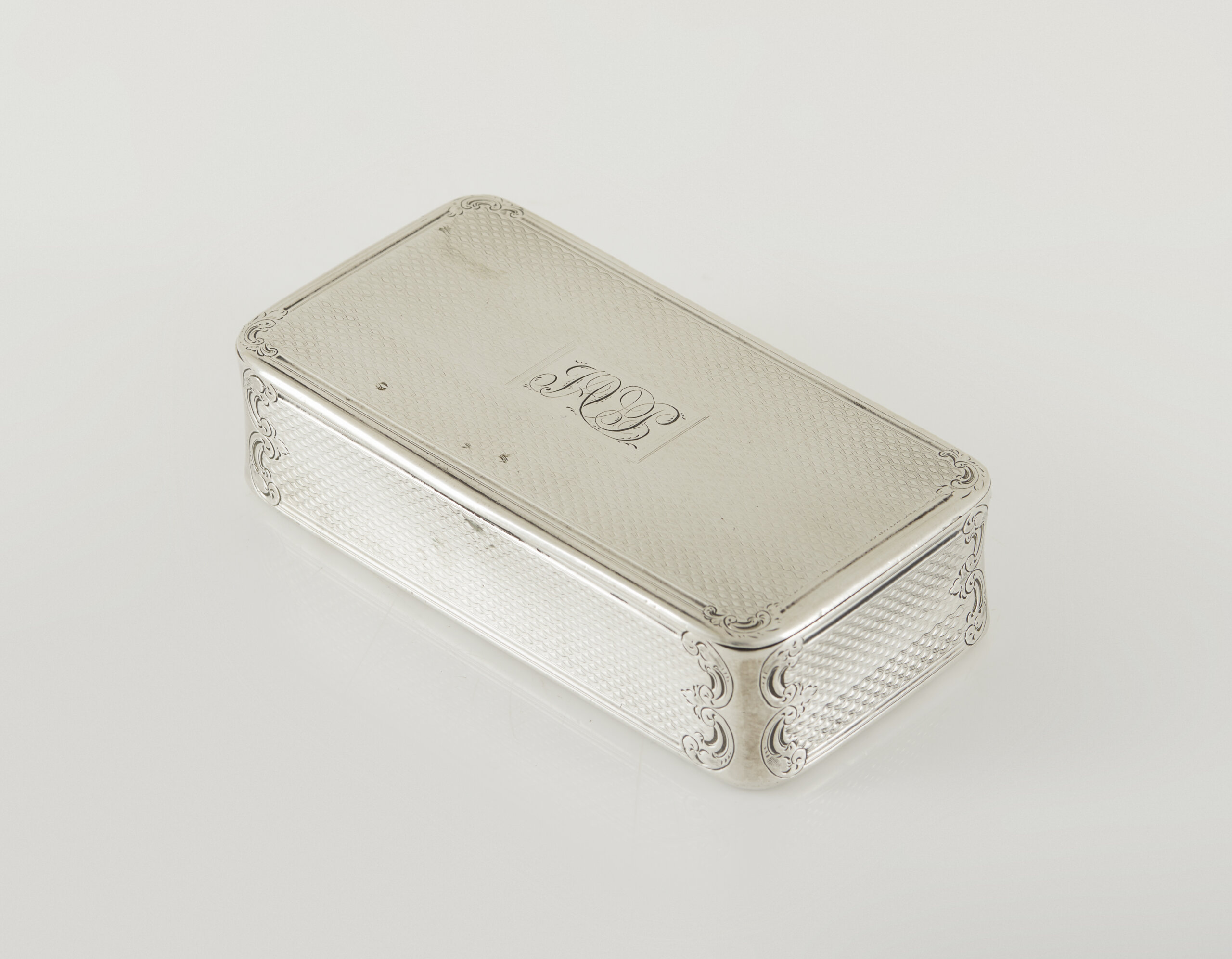 Decoração guilhochada, tampa com reserva ao centro monogramada