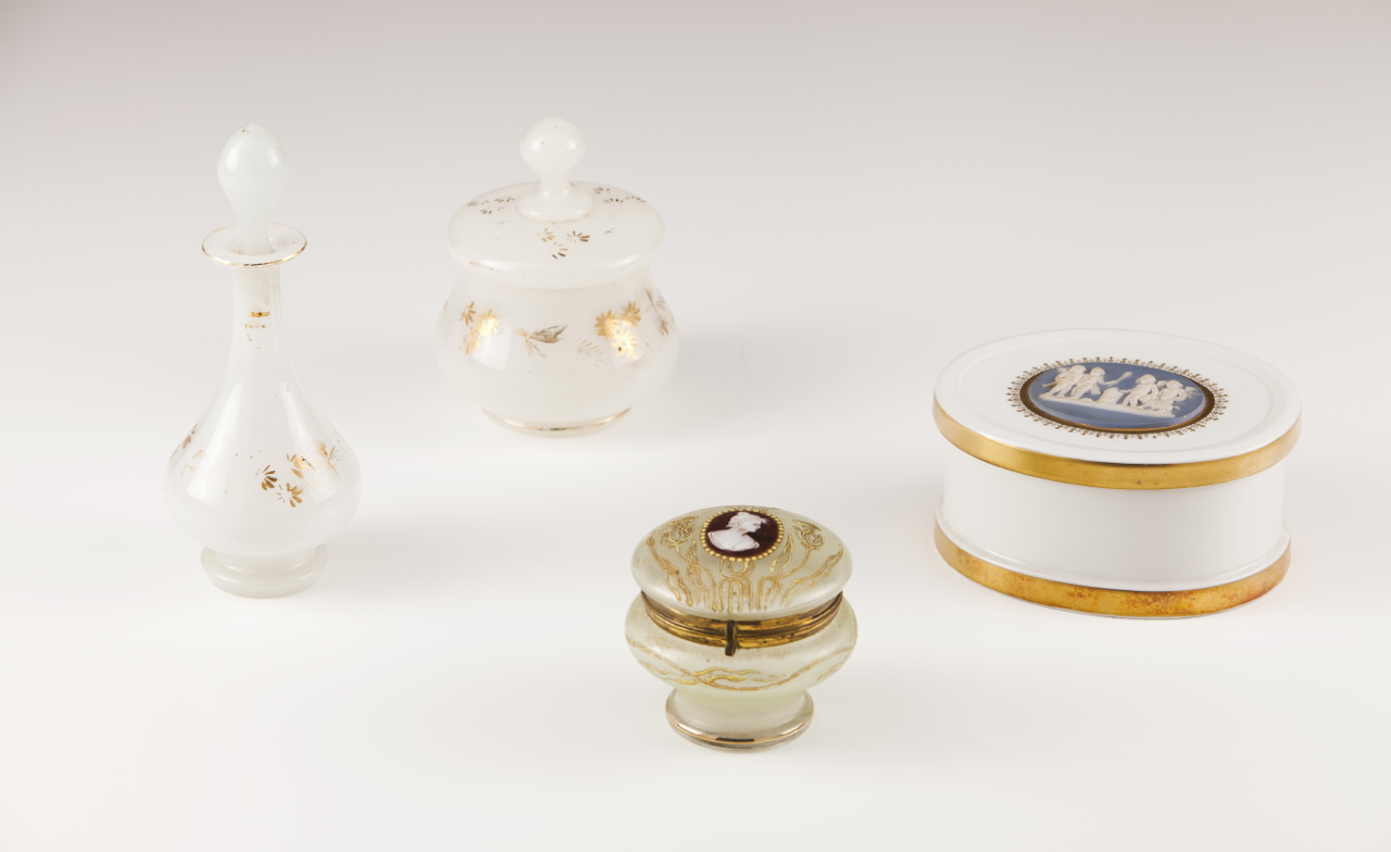 Decorada a ouro com placa tipo Wedgewood na tampa