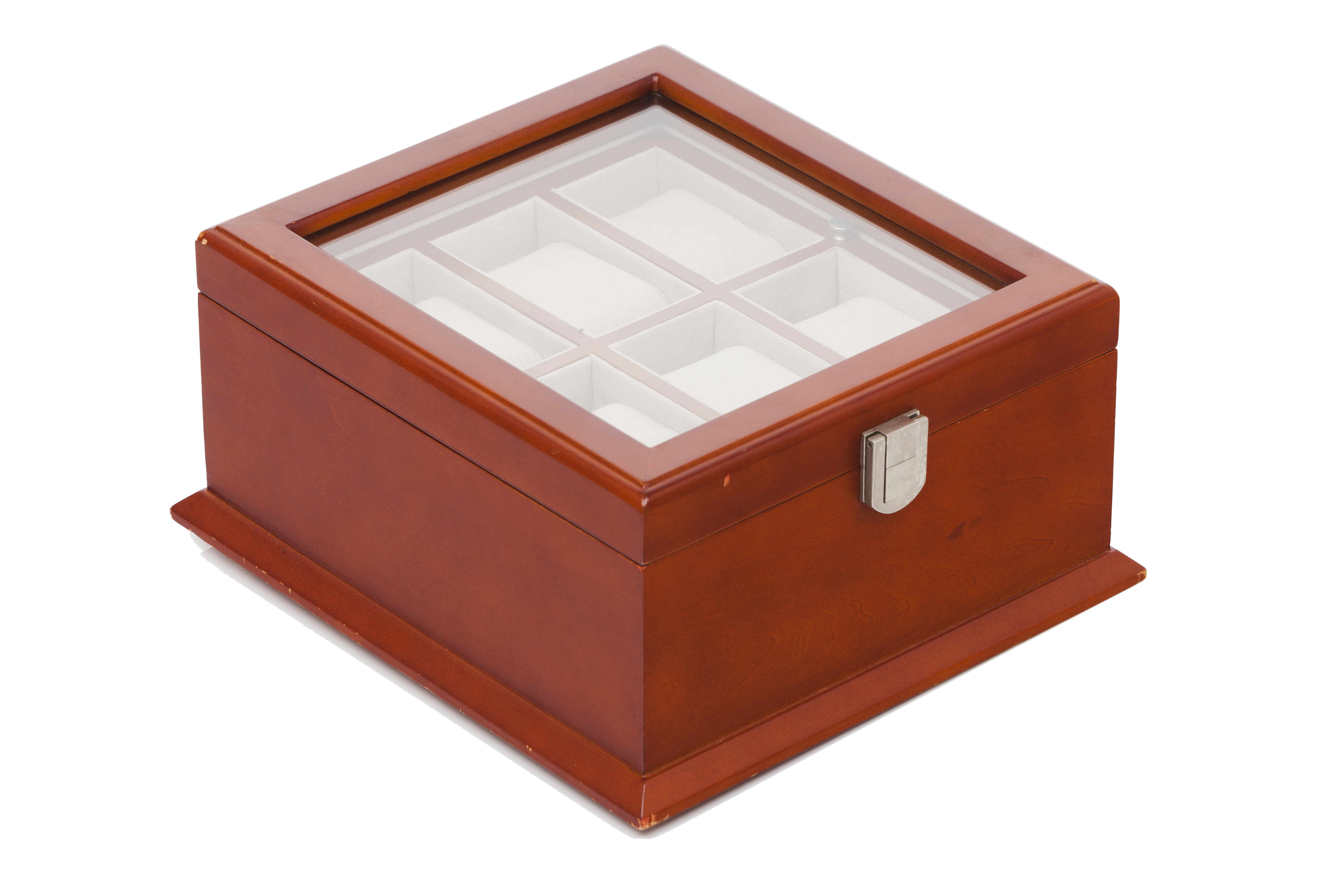 Caixa em madeira para seis relógios. Em muito bom estado de conservação.