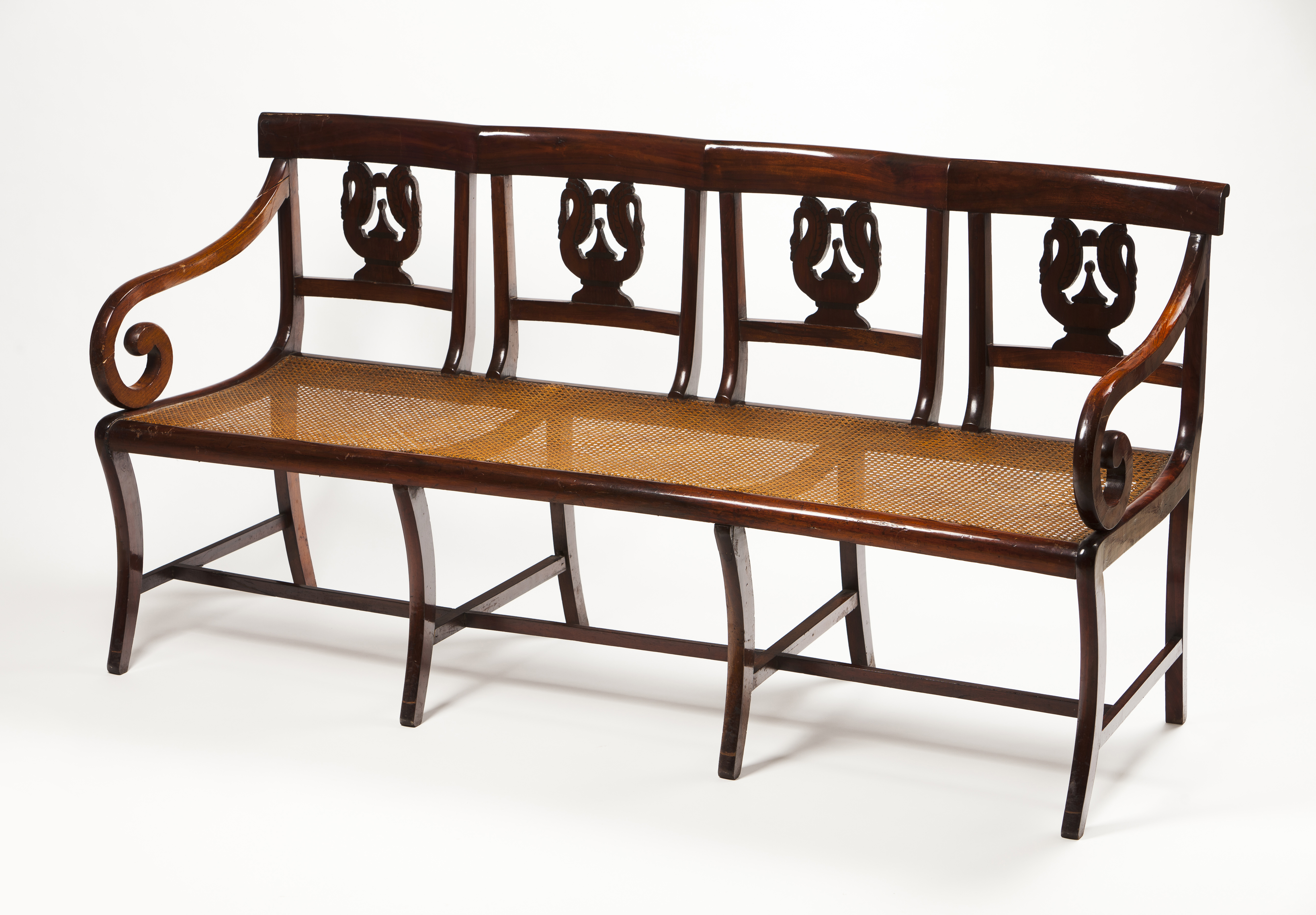 Com costas vazadas e tabelas recortados em forma de cabeças de cisne