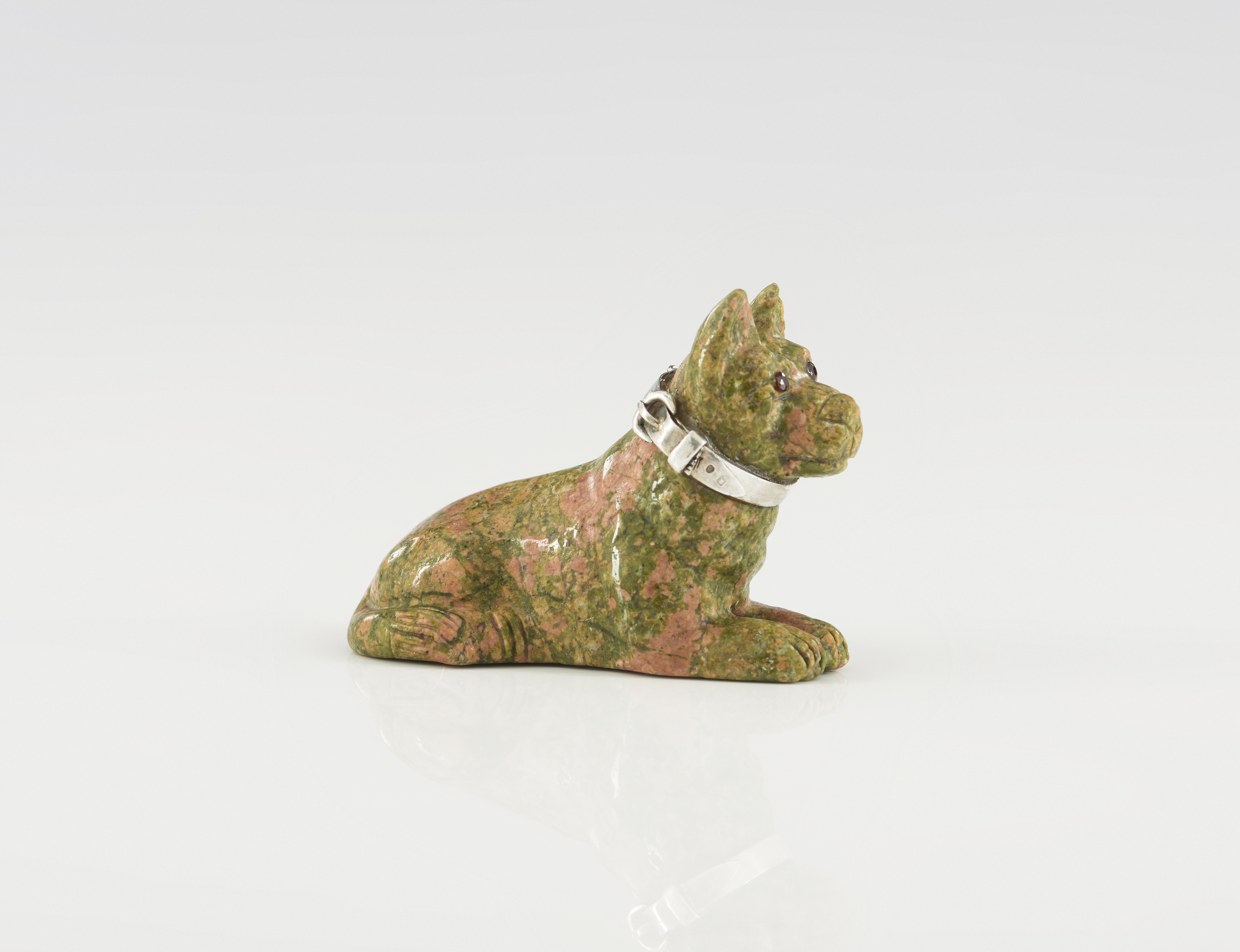 Aplicação de coleira em prata de 835/000 e olhos em granada
