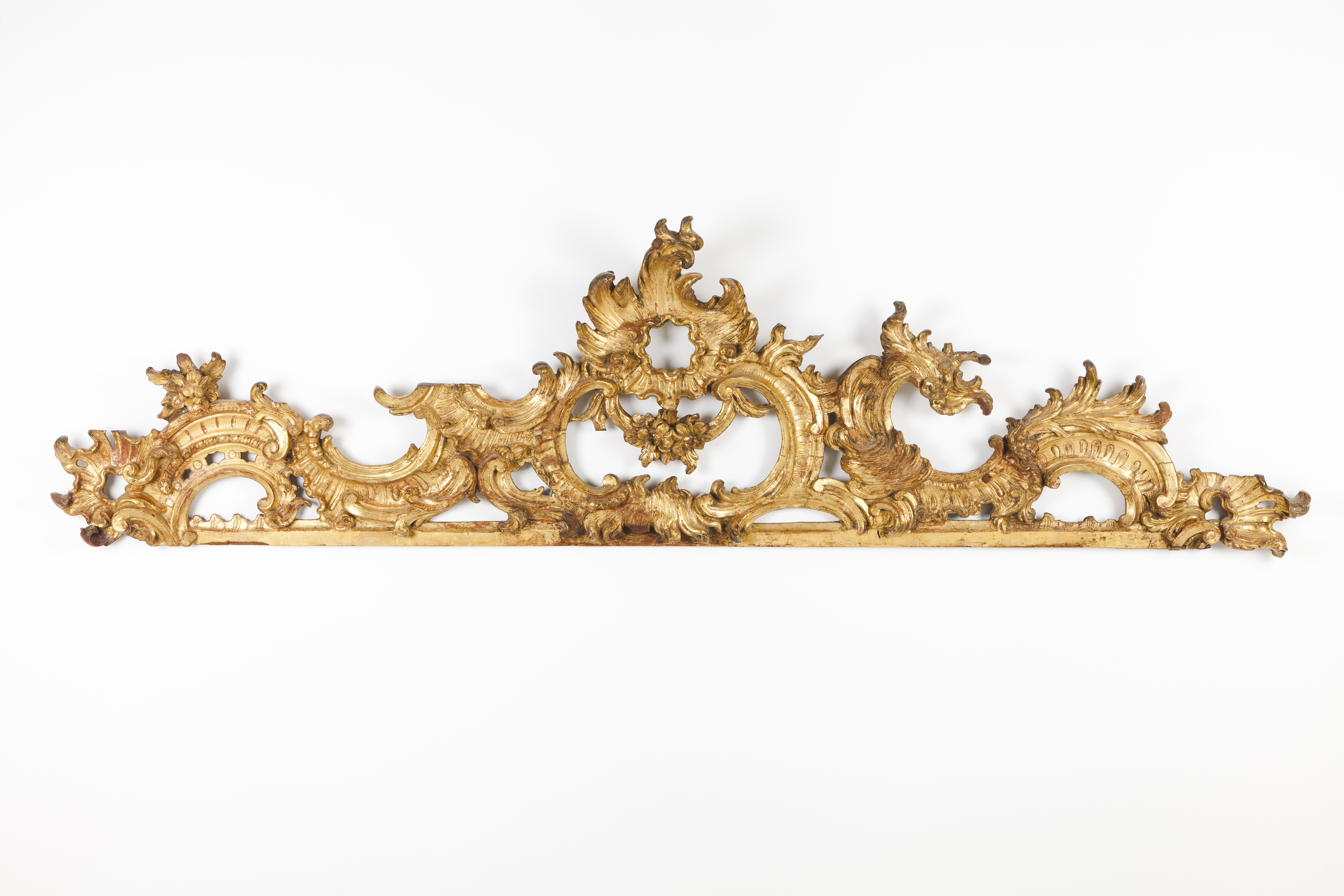 Em madeira entalhada e dourada a ouro fino