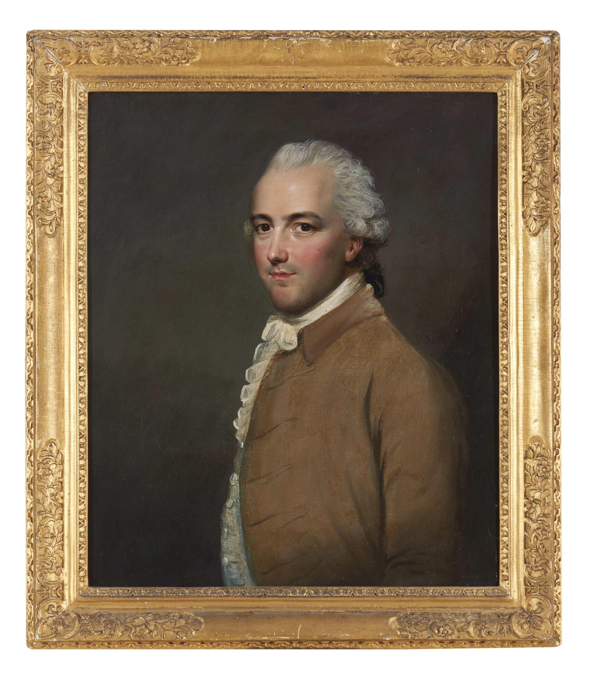 Retrato de cavalheiro com casaco bege e gravata branca