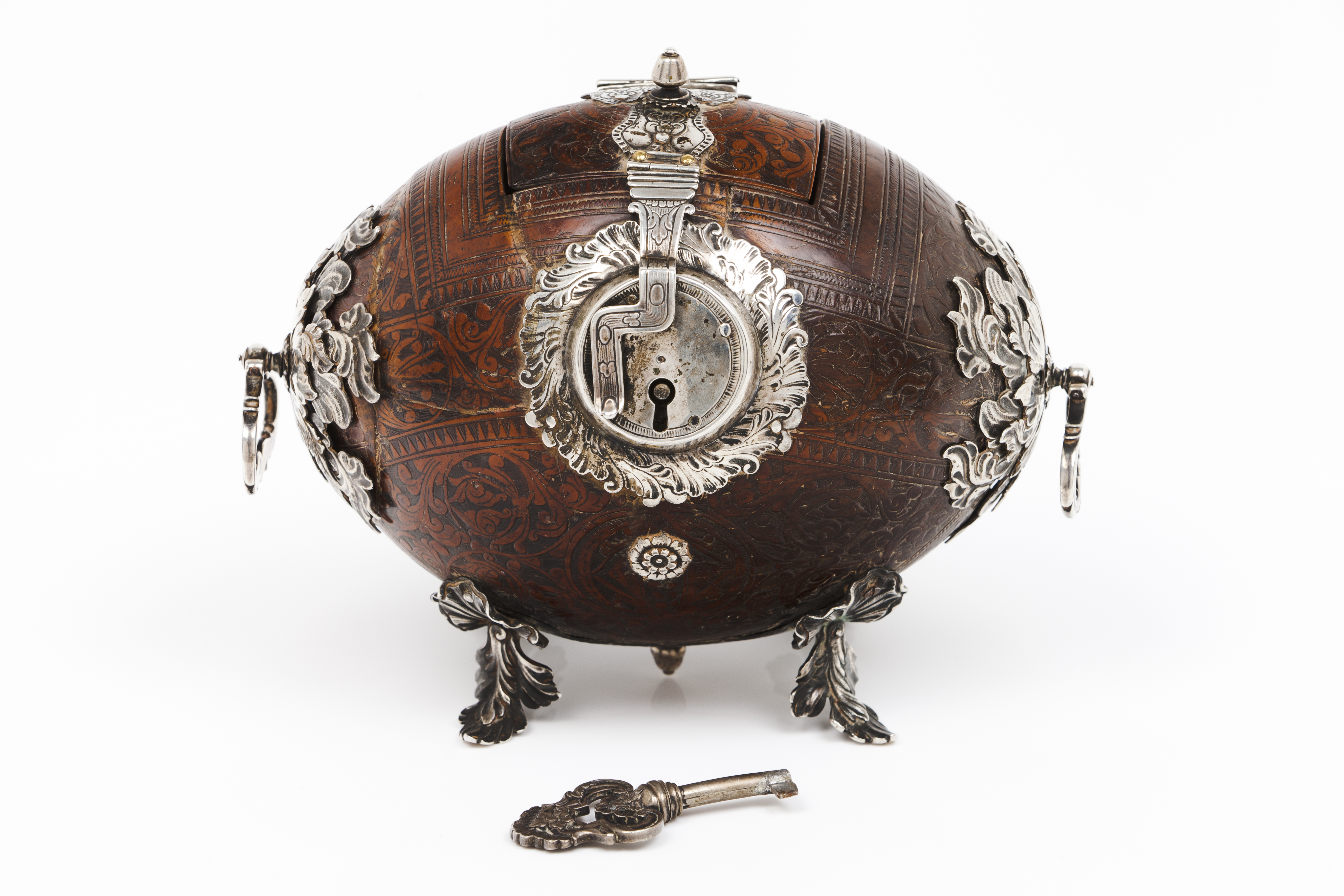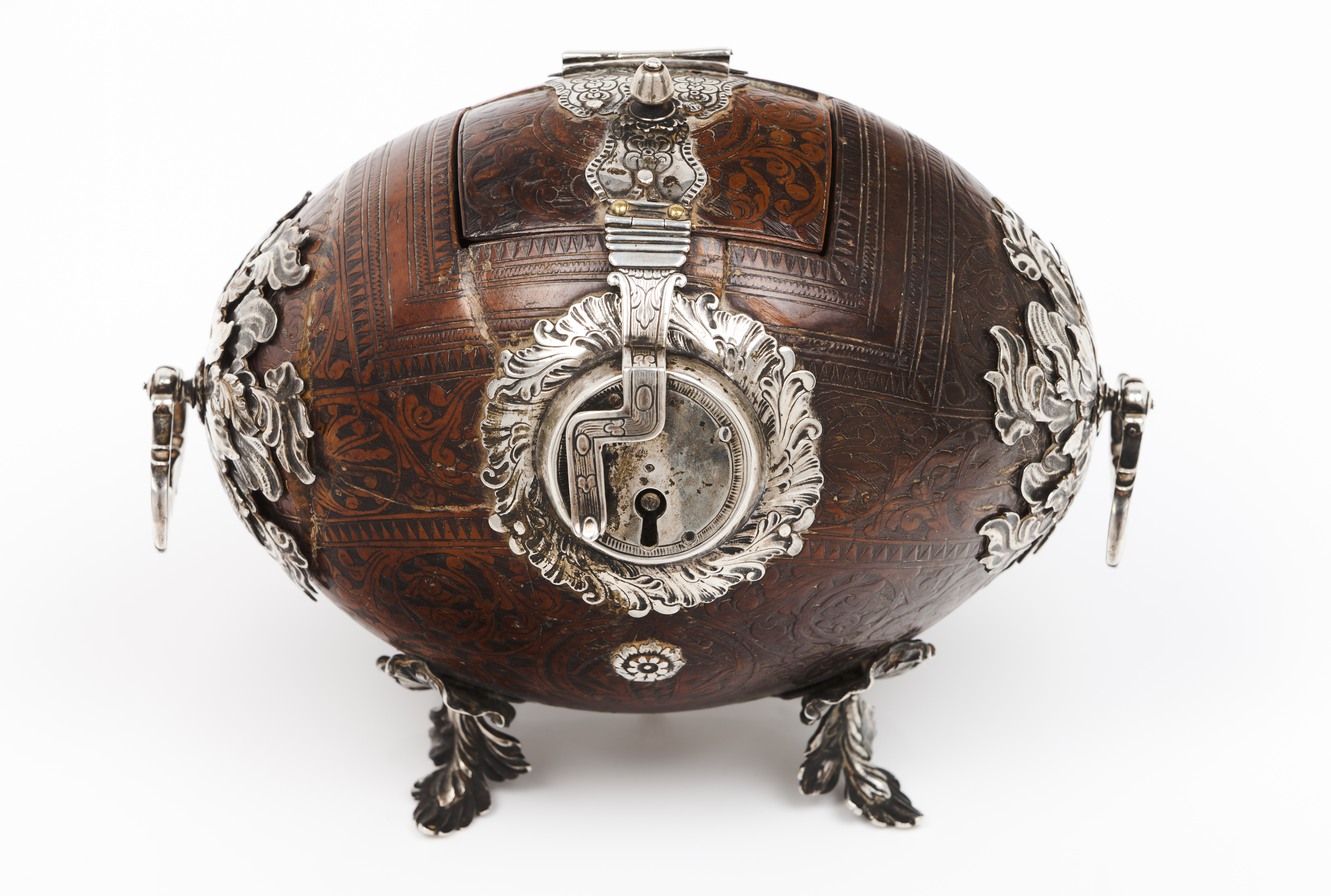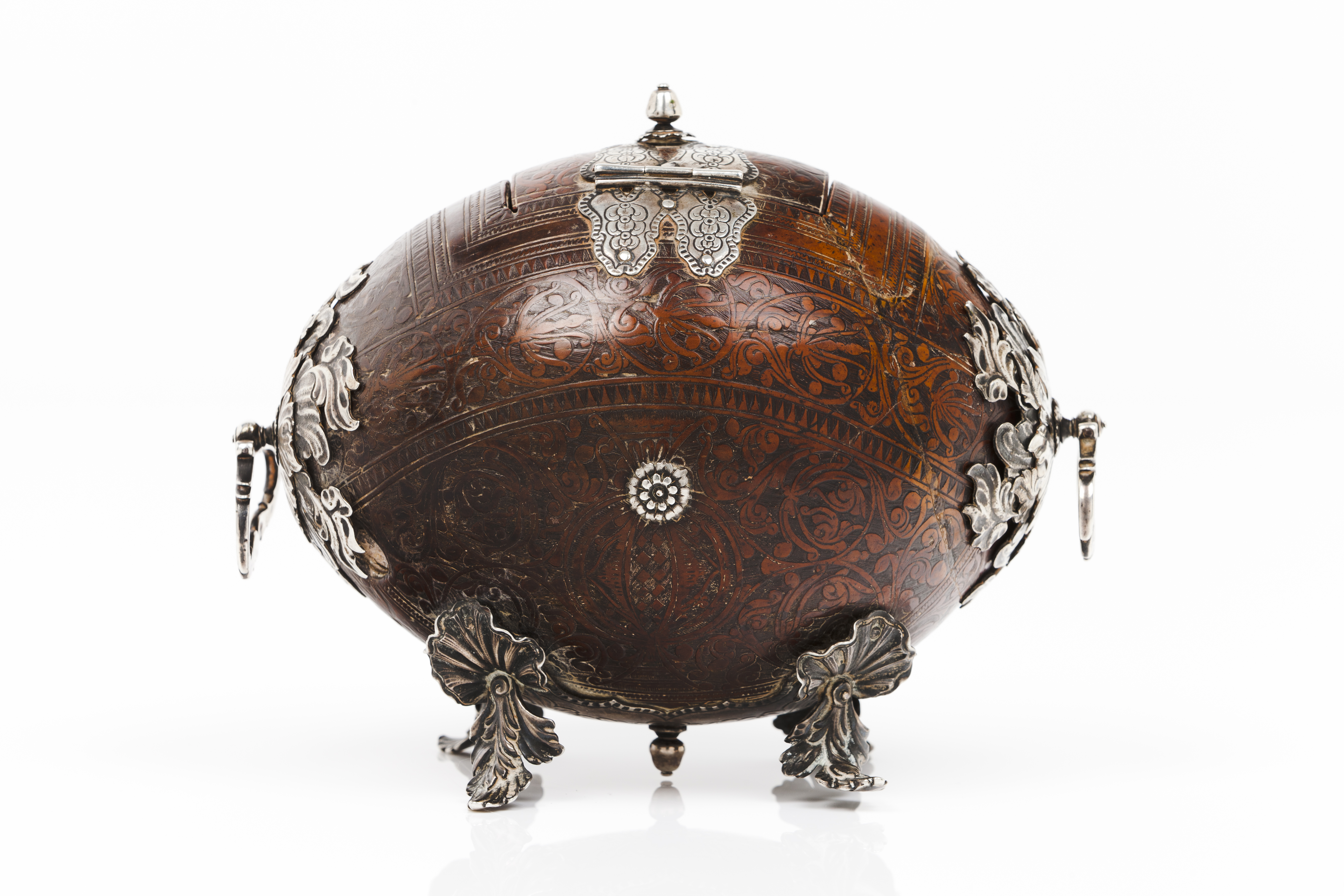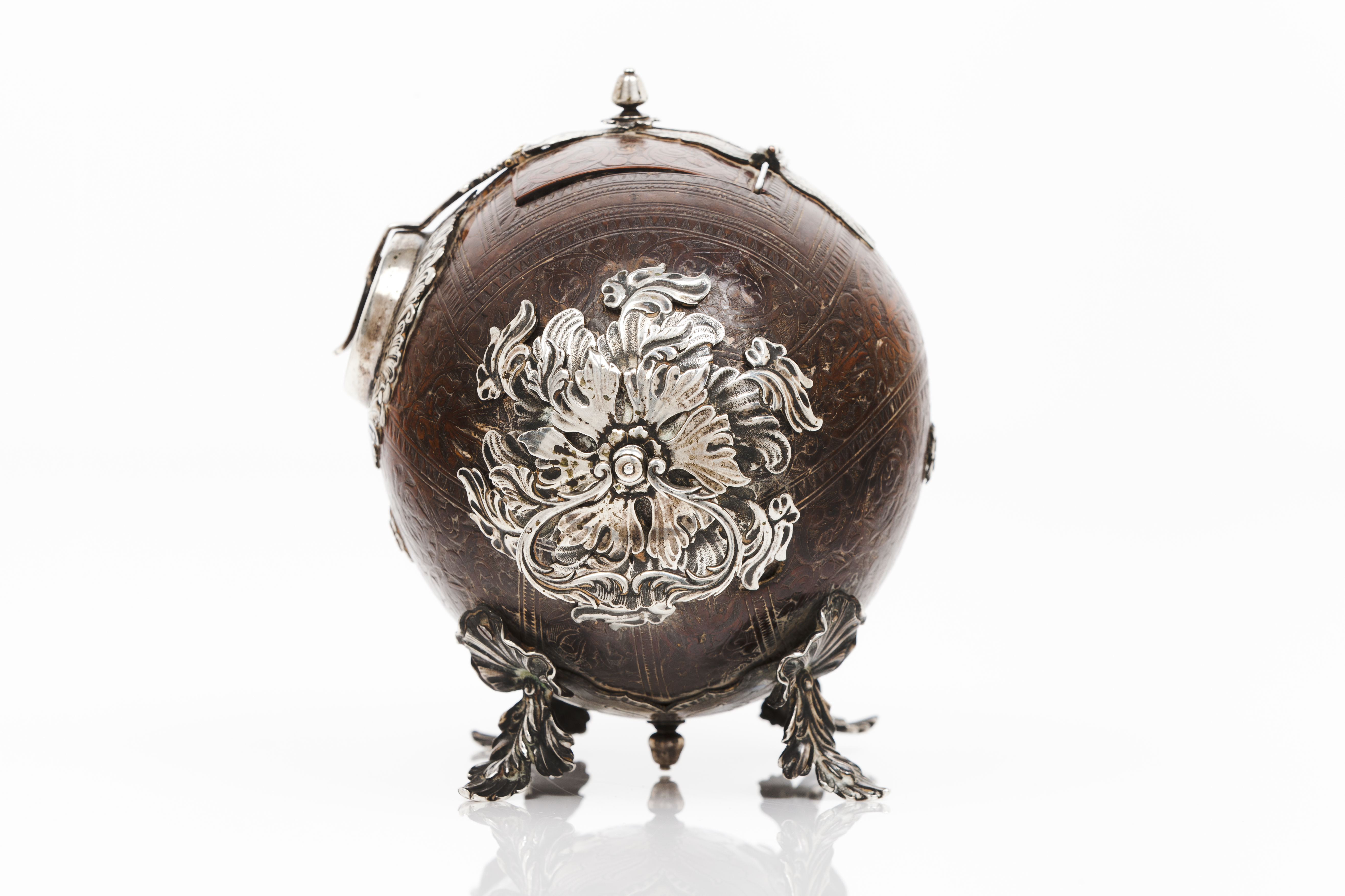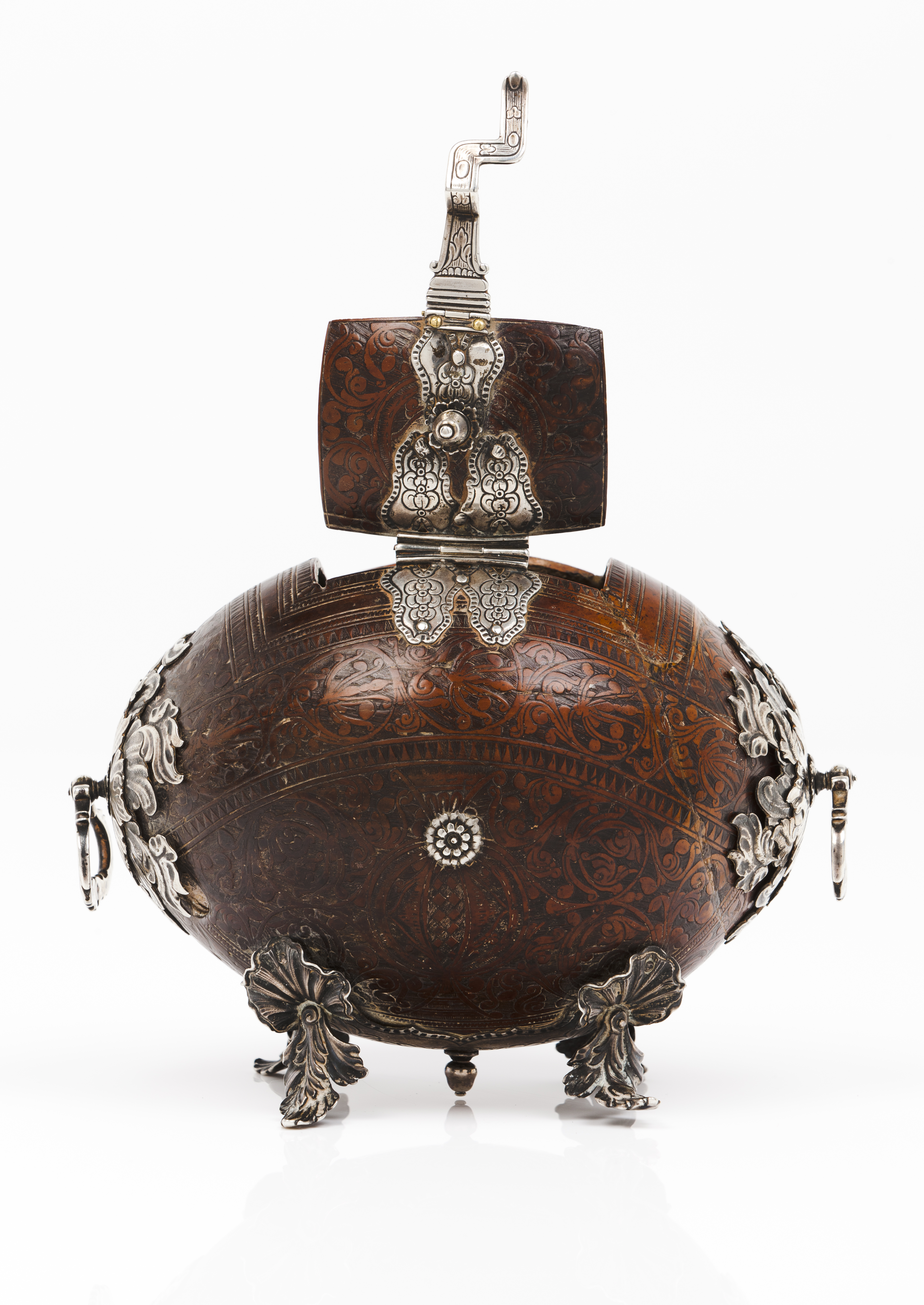 Ferragens e aplicações em prata recortada, gravada e relevada, representando motivos vegetalistas