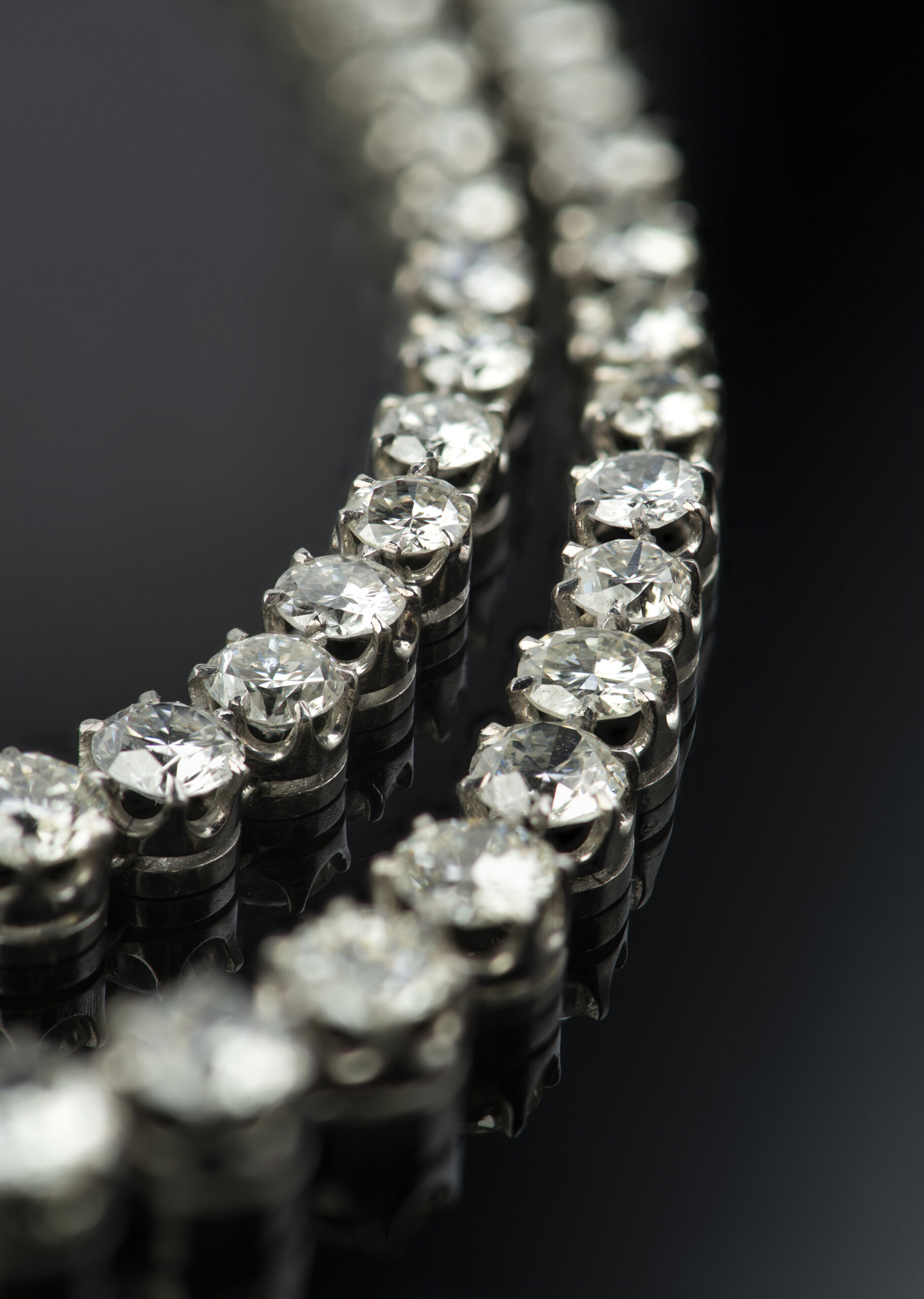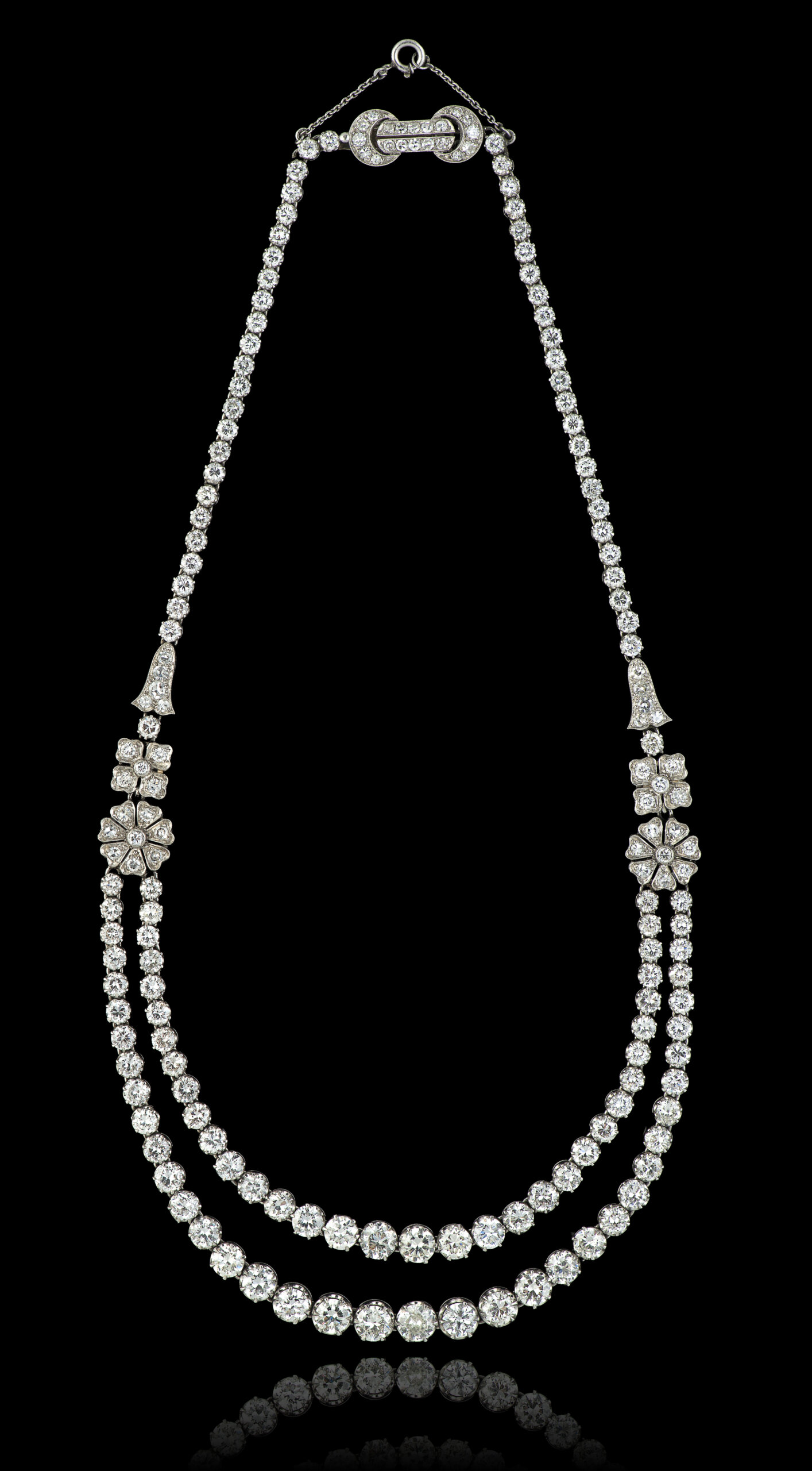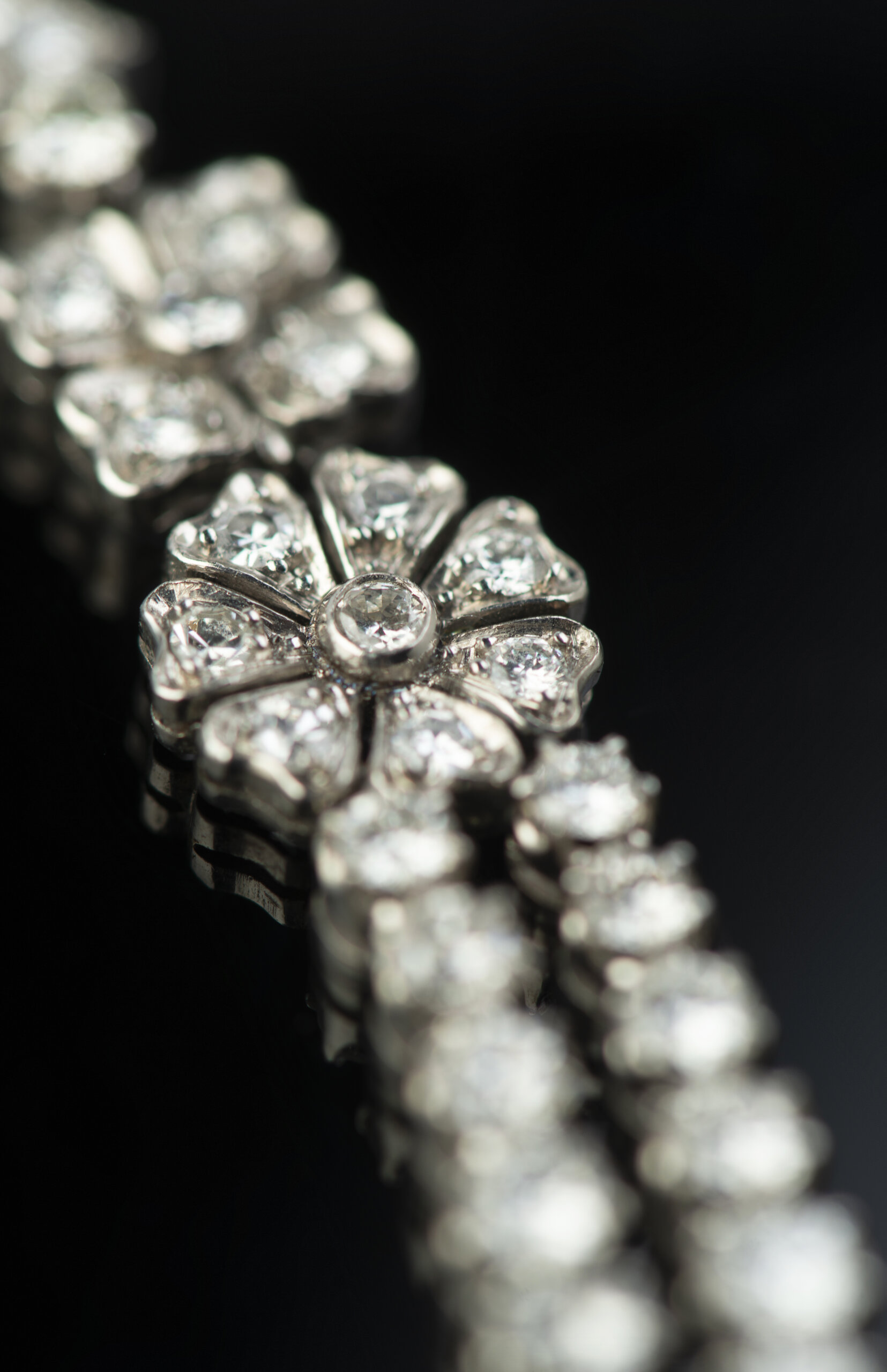 Cravejada com 54 diamantes e talhe 8/8 com o peso aproximado de 1,60 ct. e 124 diamantes em talhe de brilhante com o peso total aproximado de 22 ct.