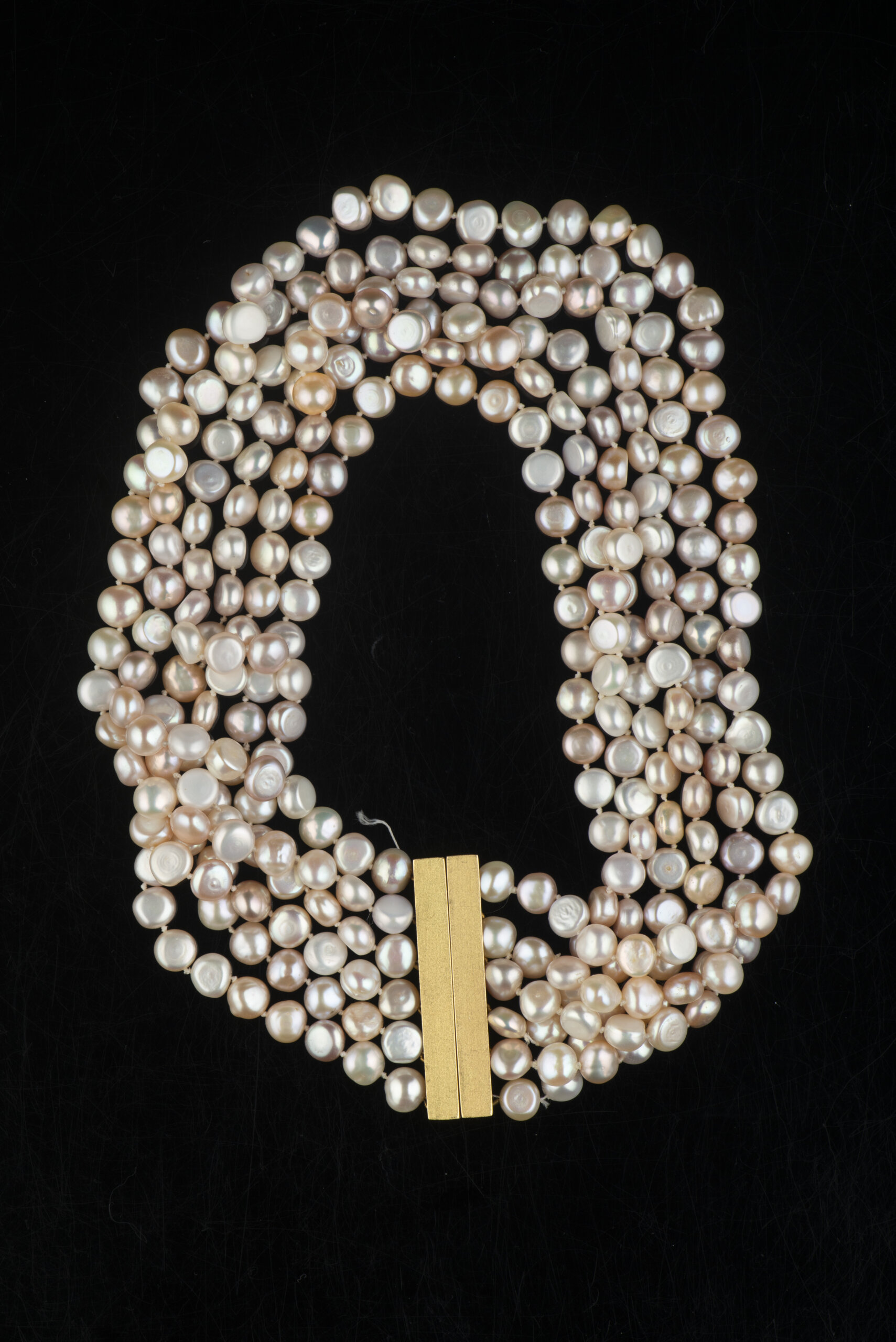 Composto por 5 fiadas de pérolas de água doce em tom rosa