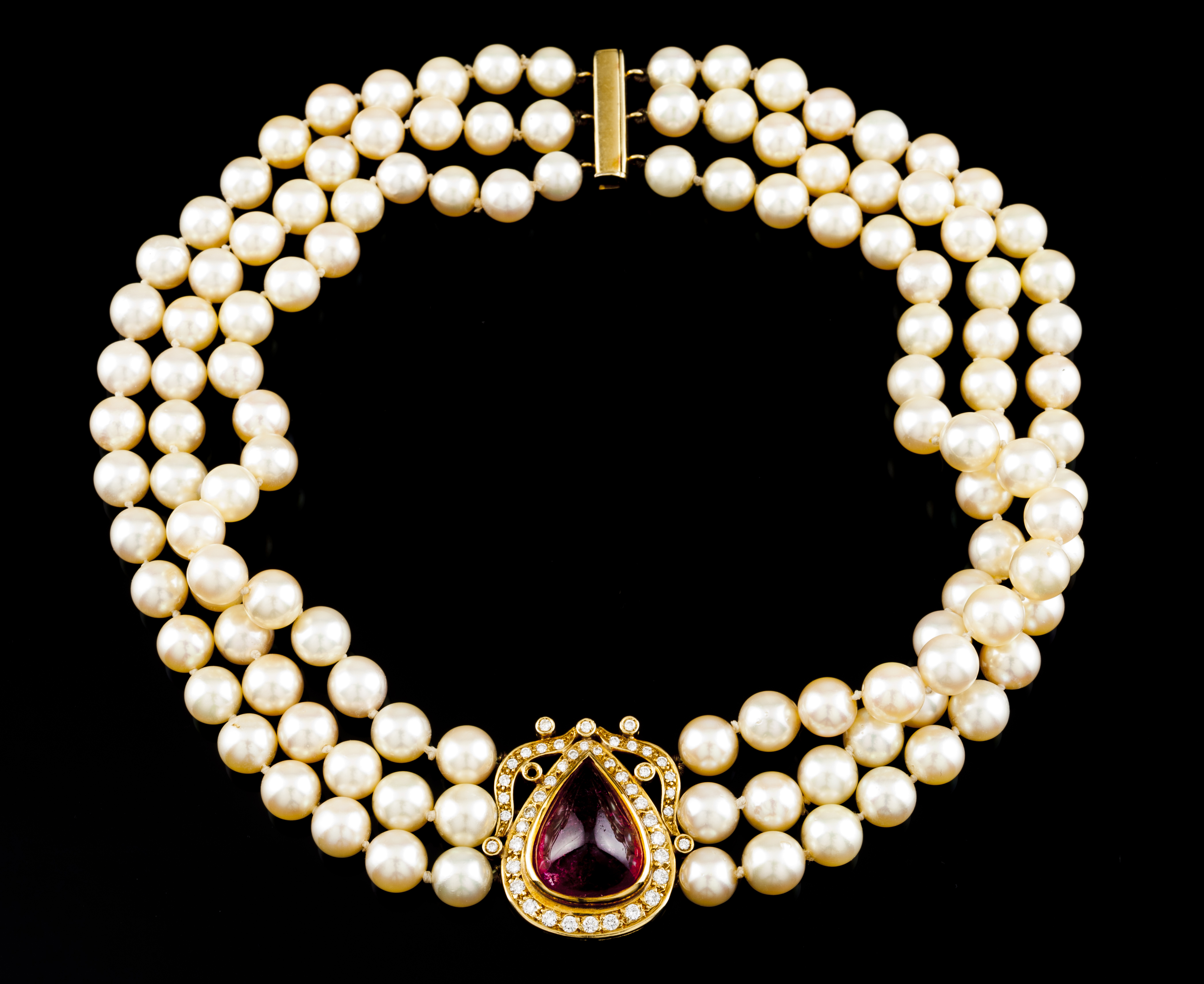 Composto por três fiadas de pérolas de cultura (7,5 mm) (não testadas)