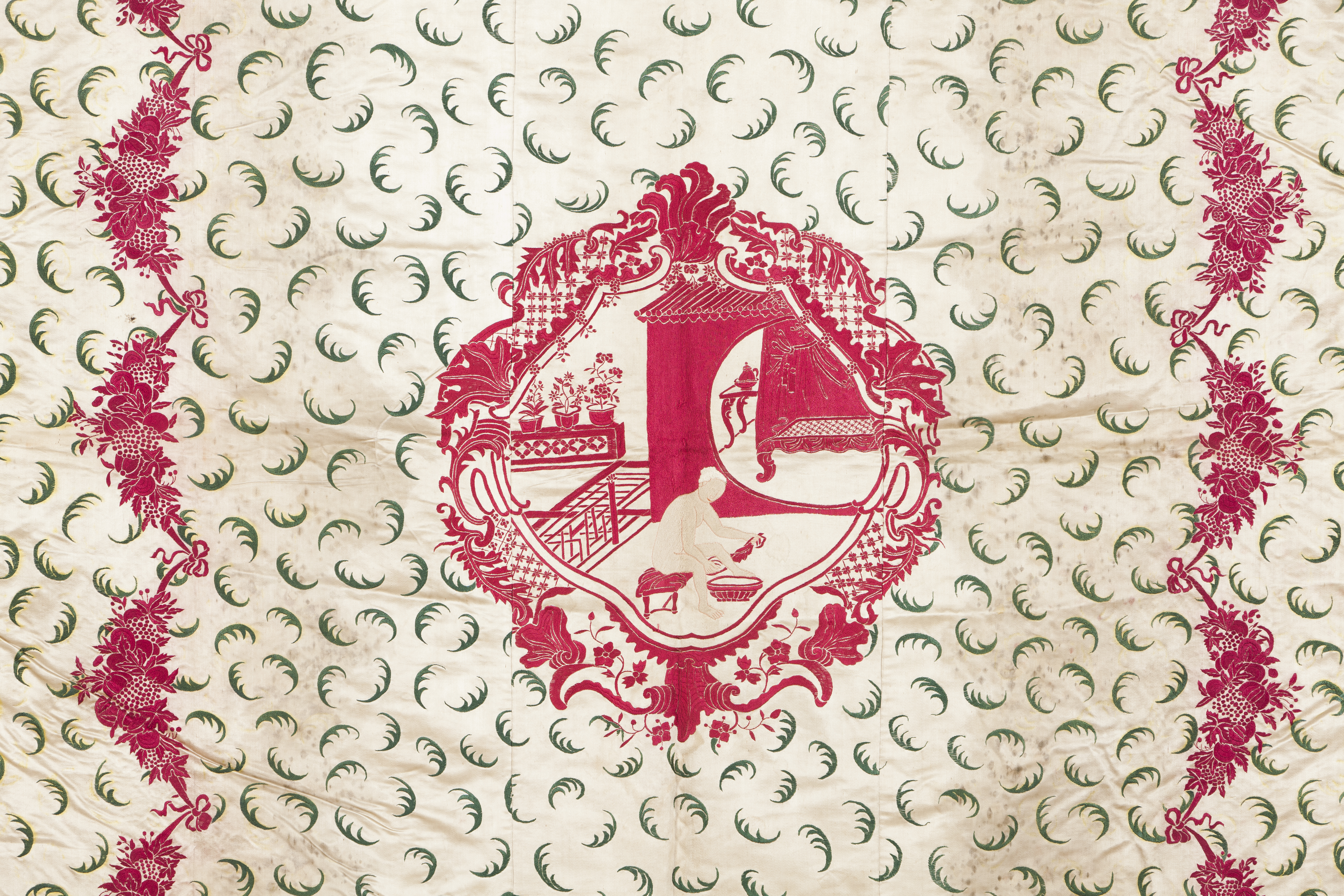 Decorada ao centro com medalhão representando cena de interior com senhora a banhar-se
