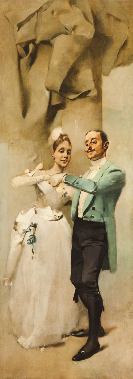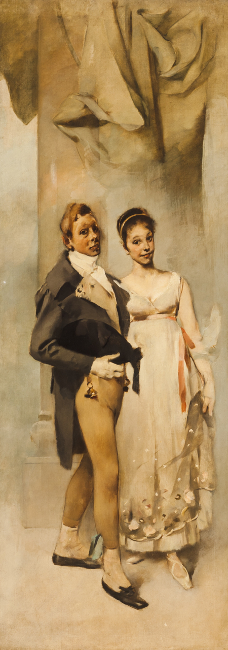 ) O primeiro panno é consagrado á dança de hoje: um par adolescente avança com dengosidade fin-de-siècle (