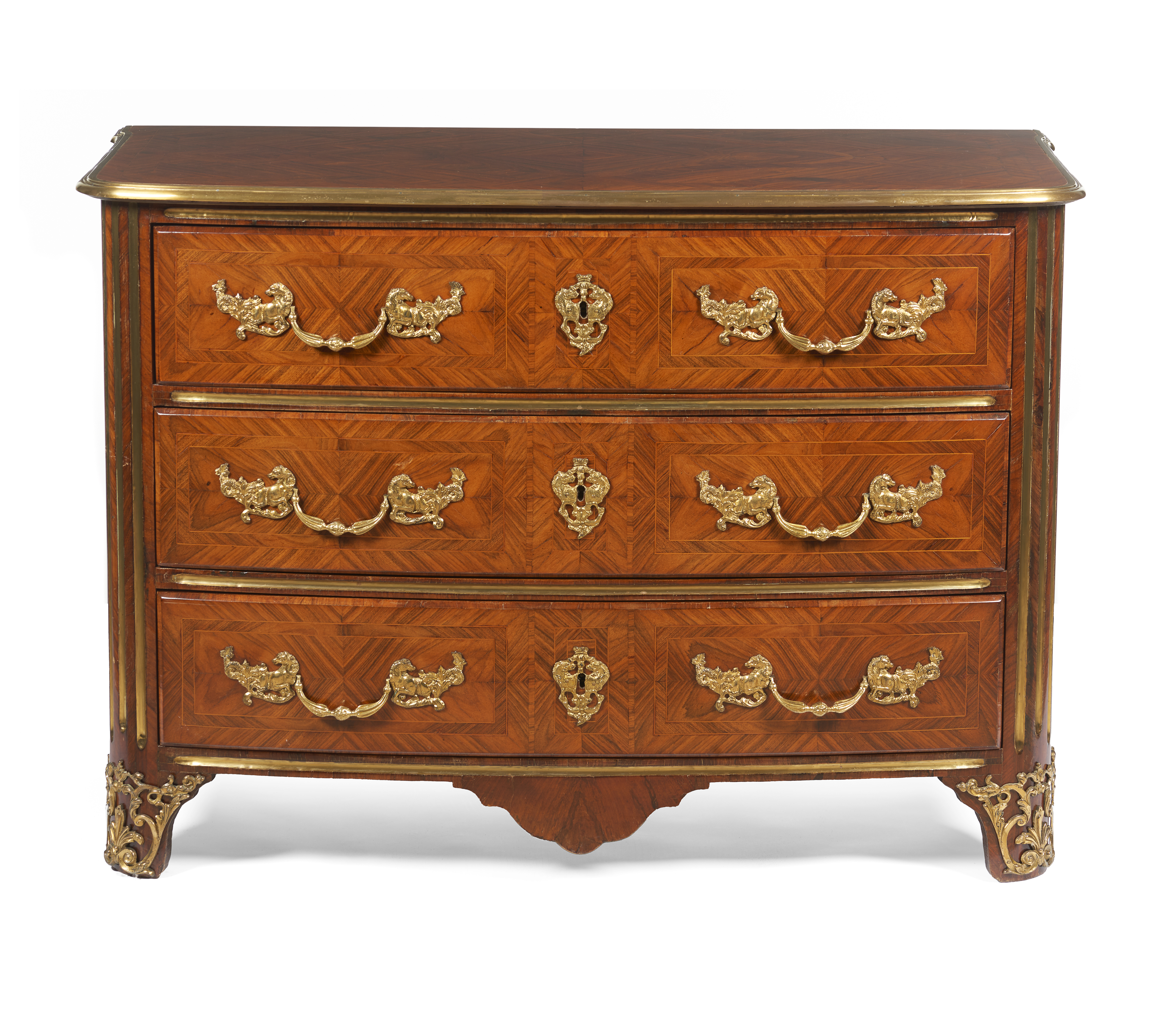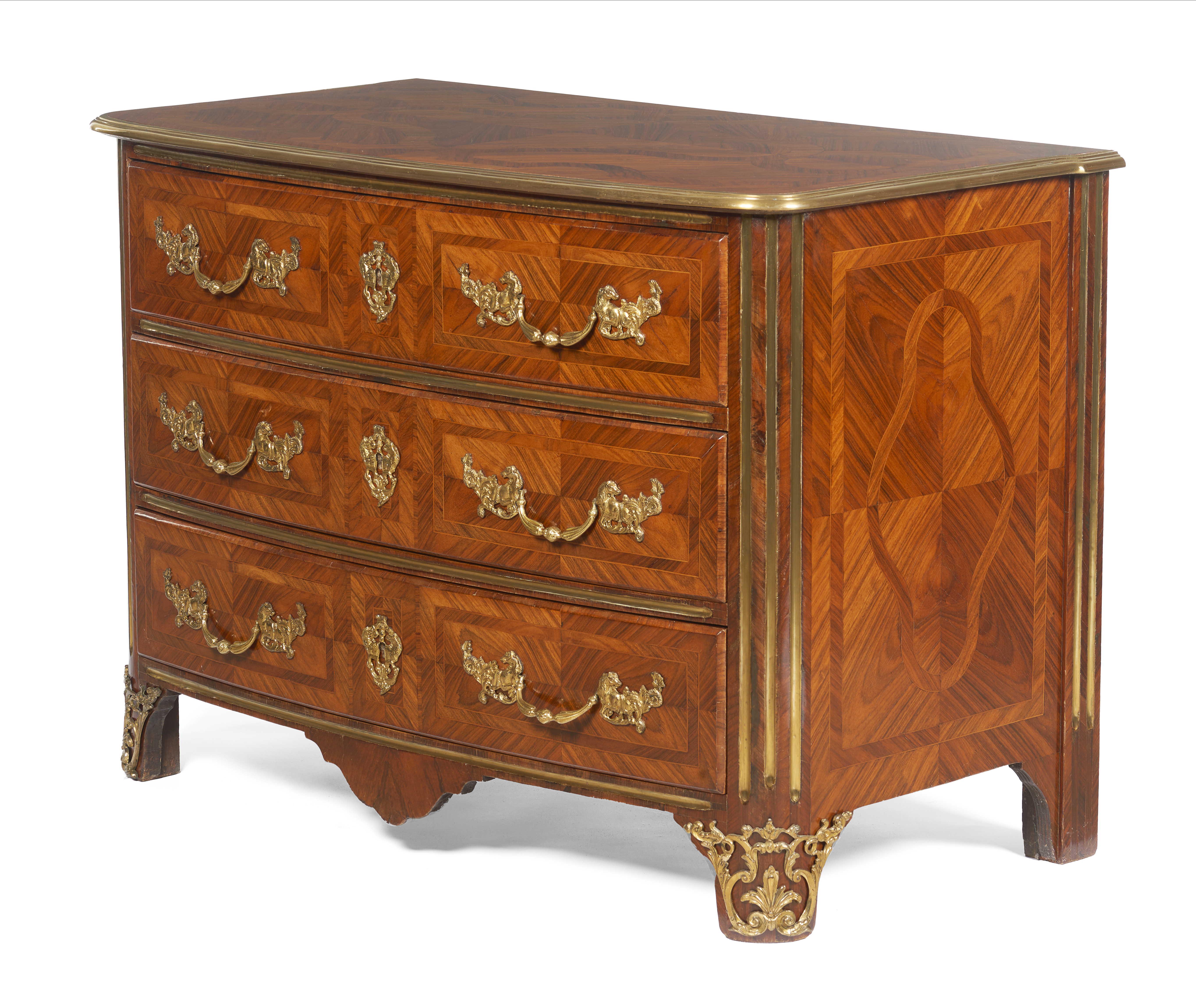 Faixeada a pau-santo e decorada com ferragens em bronze dourado