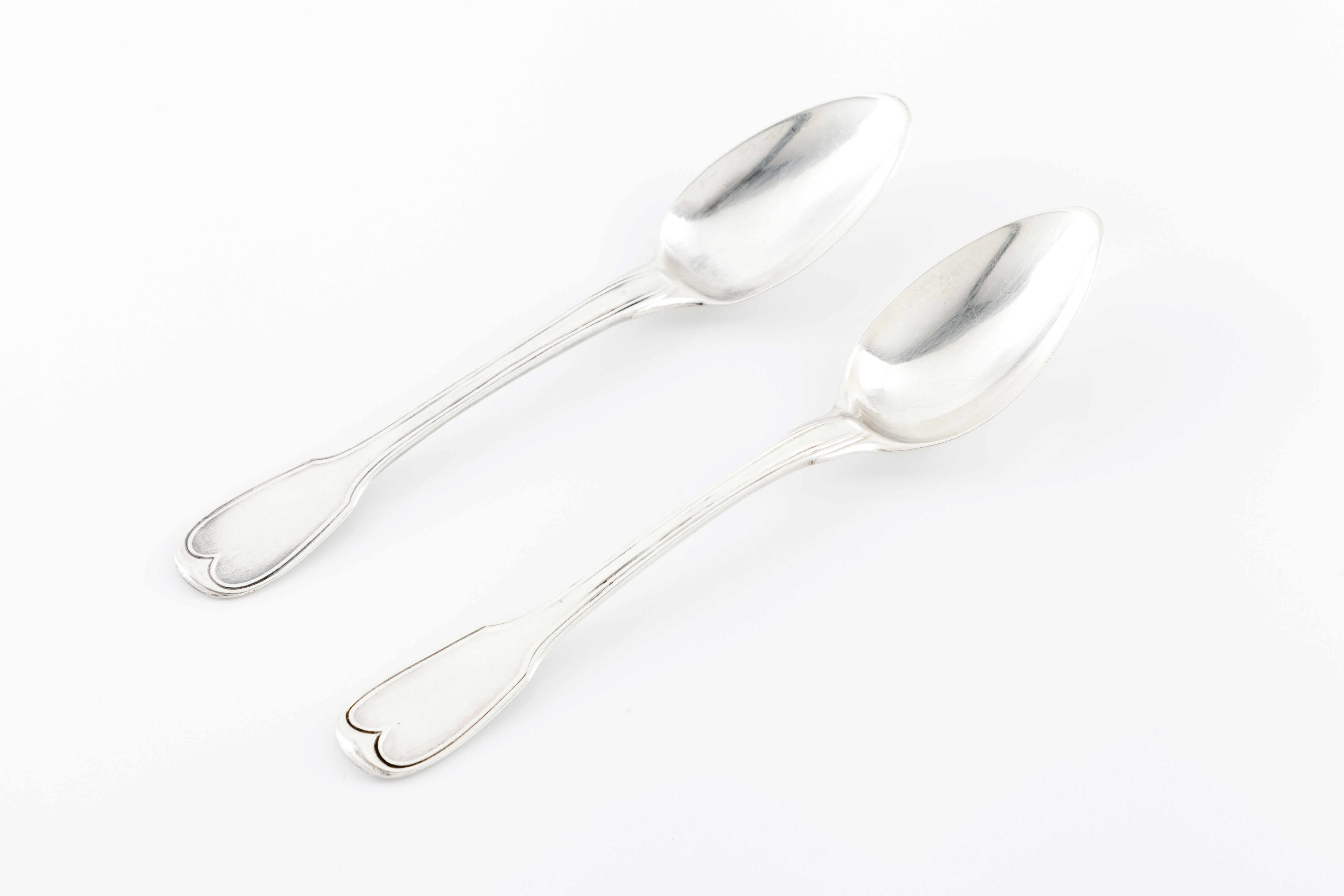 Prata Francesa em formato de violino com decoração de filetes e monograma MB gravado, marcas do séc. XVIII