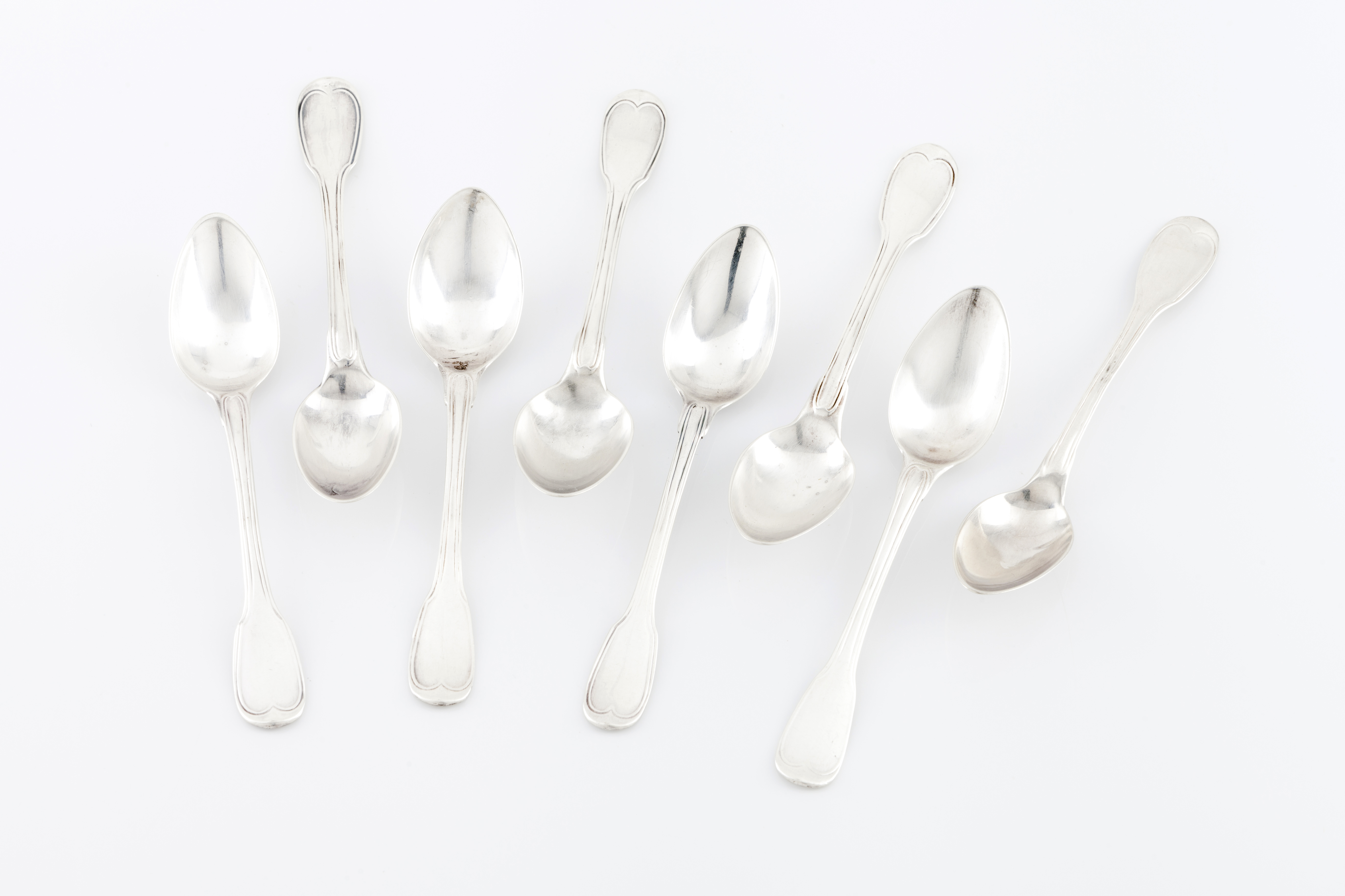 Prata francesa com decoração em formato de violino e filetes com escudo de armas de casamento para o Conde Jules BOSELLI e Anna de CHALVET de ROCHEMONTEIX, sob elmo e coroa de marquês, marcado "1er Coq", "1er titre", "Moyenne Garantie Paris"