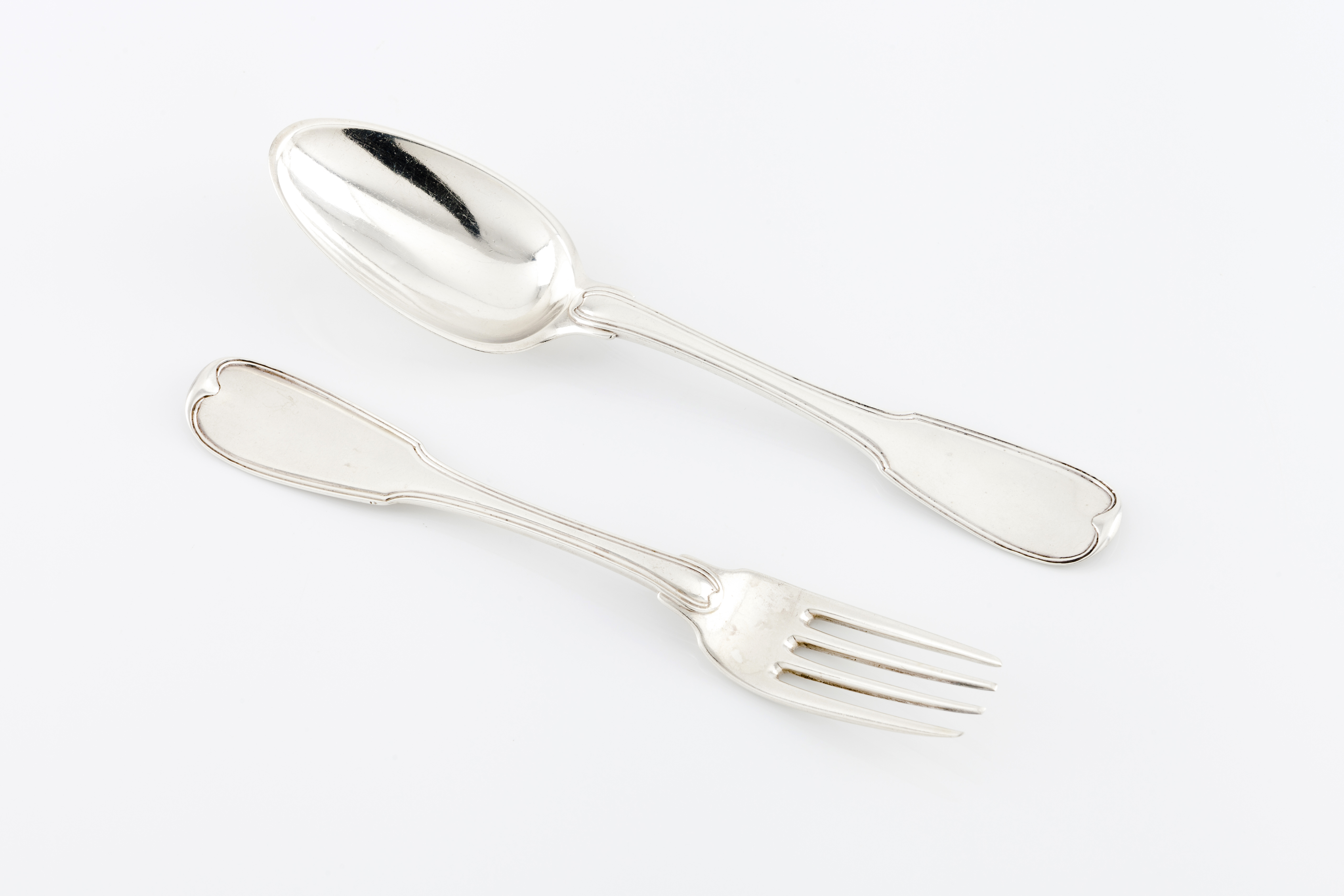 Decoração em formato de violino com fios com armas gravadas sob coroa de conde e medalha da Ordem do Espírito Santo