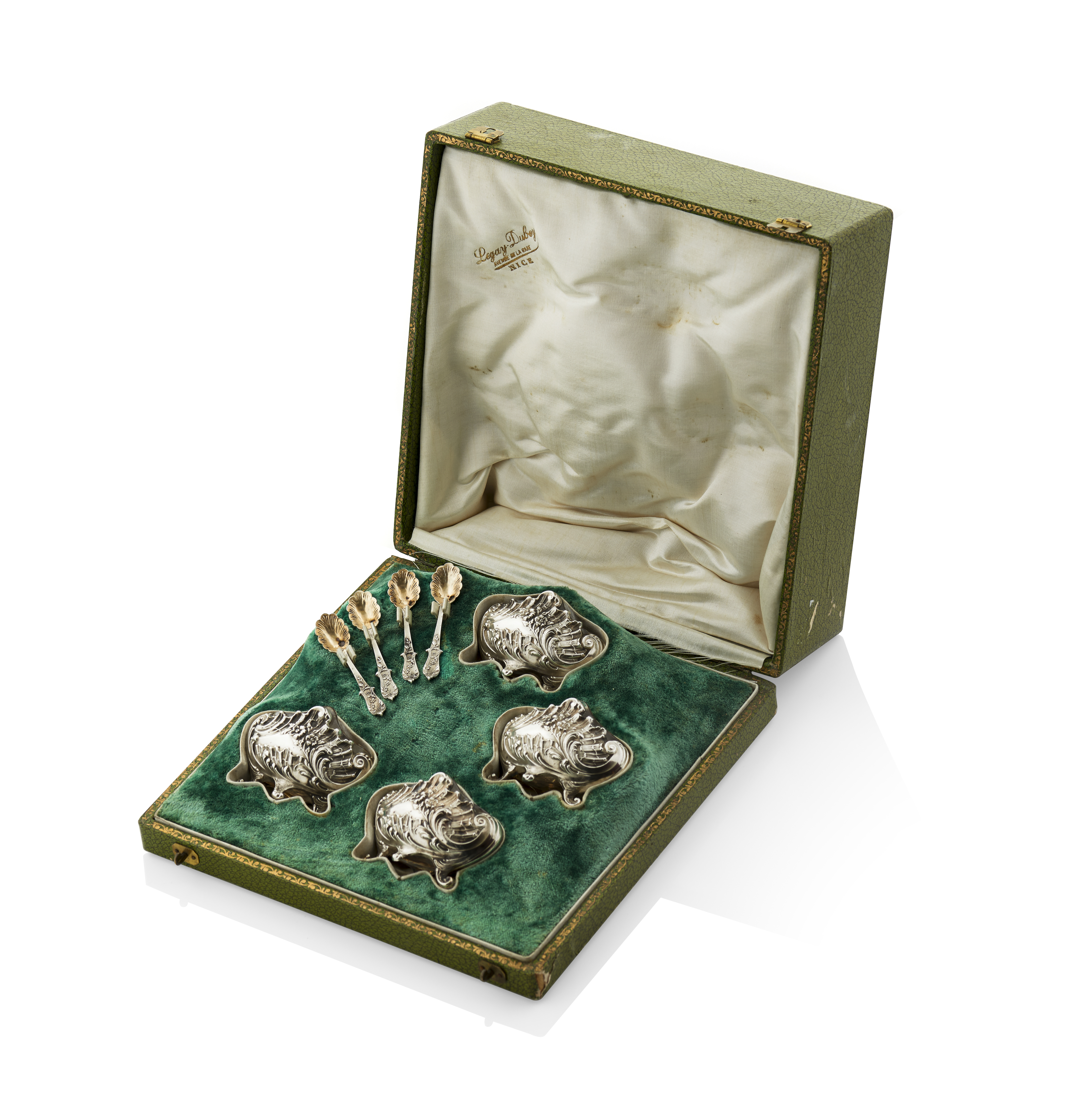 Conjunto de quatro saleiros com colheres