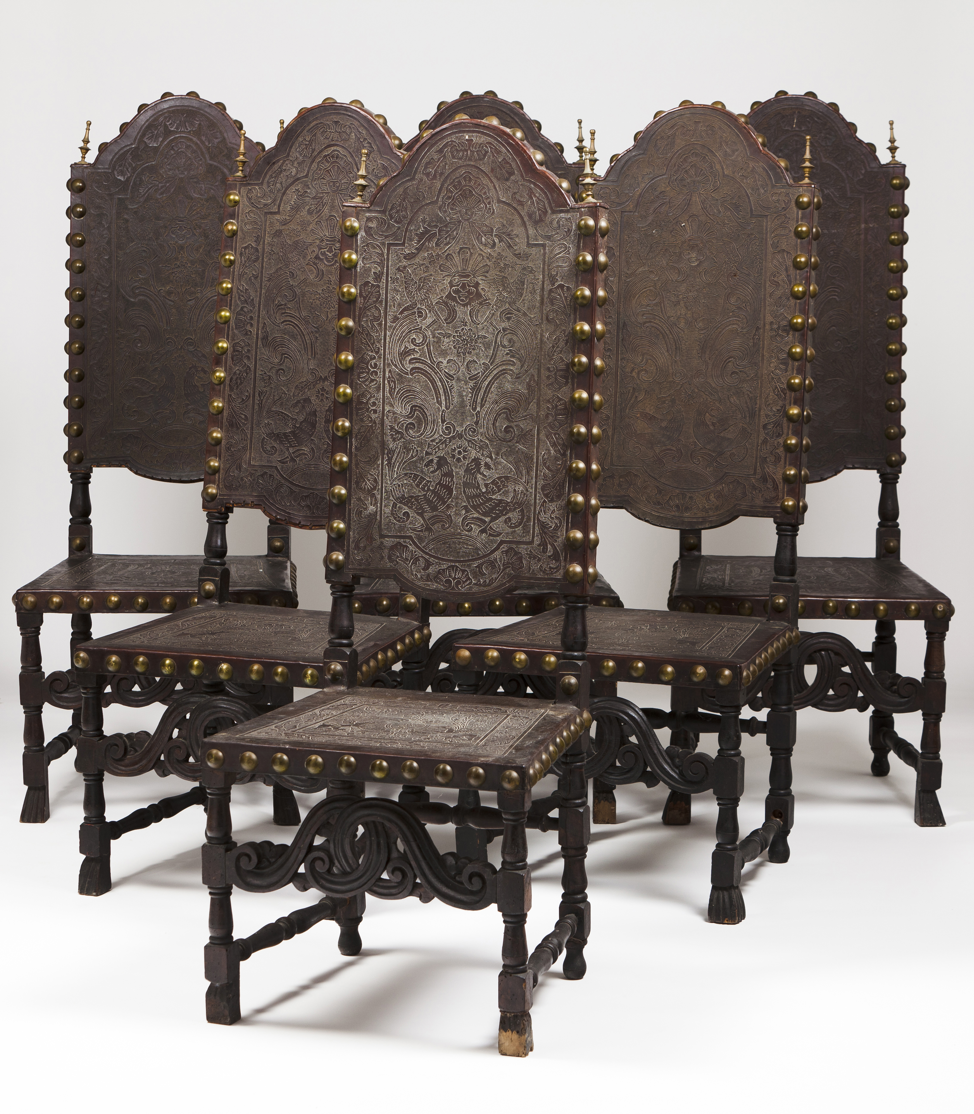 Assentos e costas em couro gravado e pregaria
