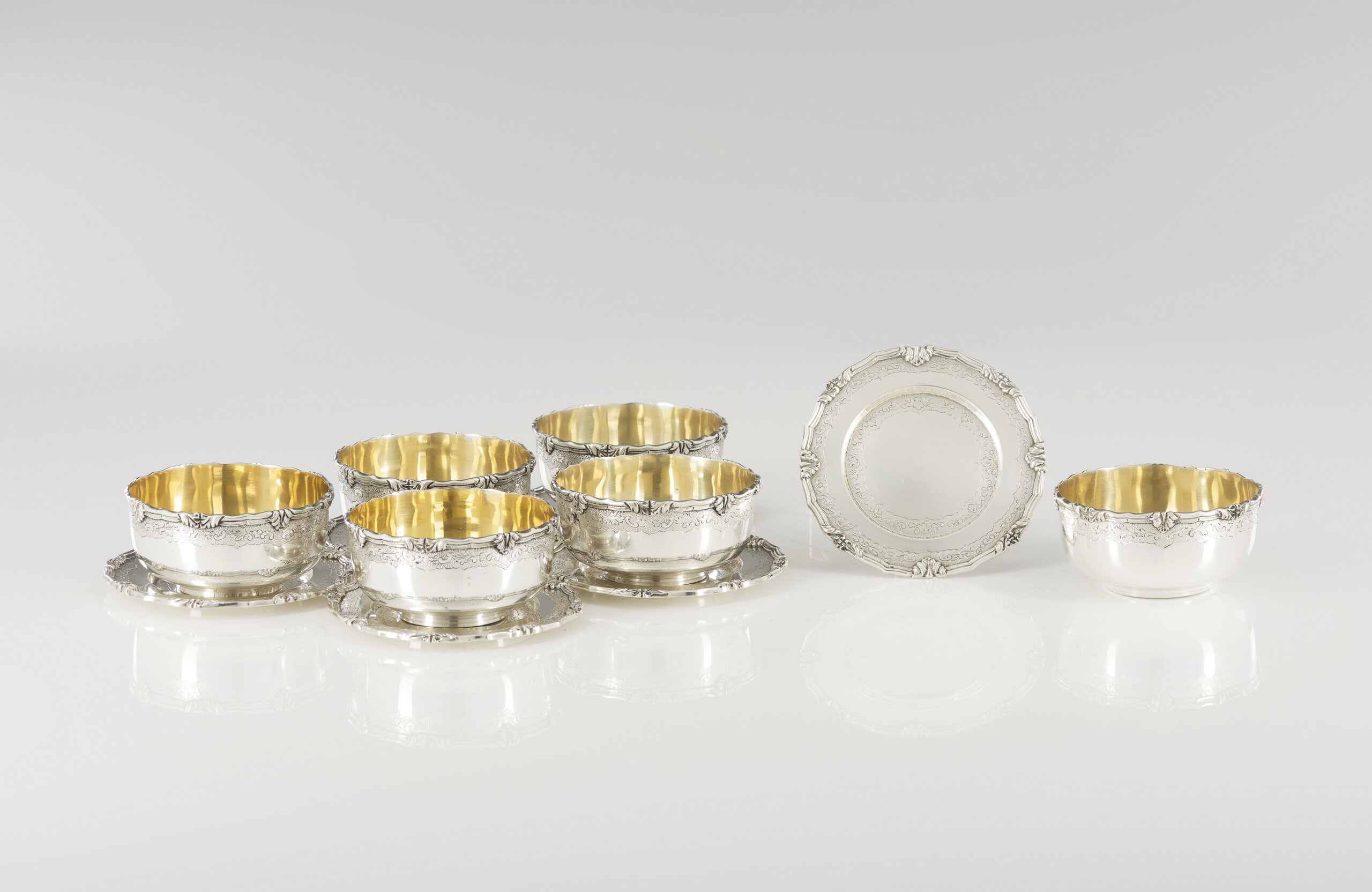 Conjunto de seis lavabos e seis pratos