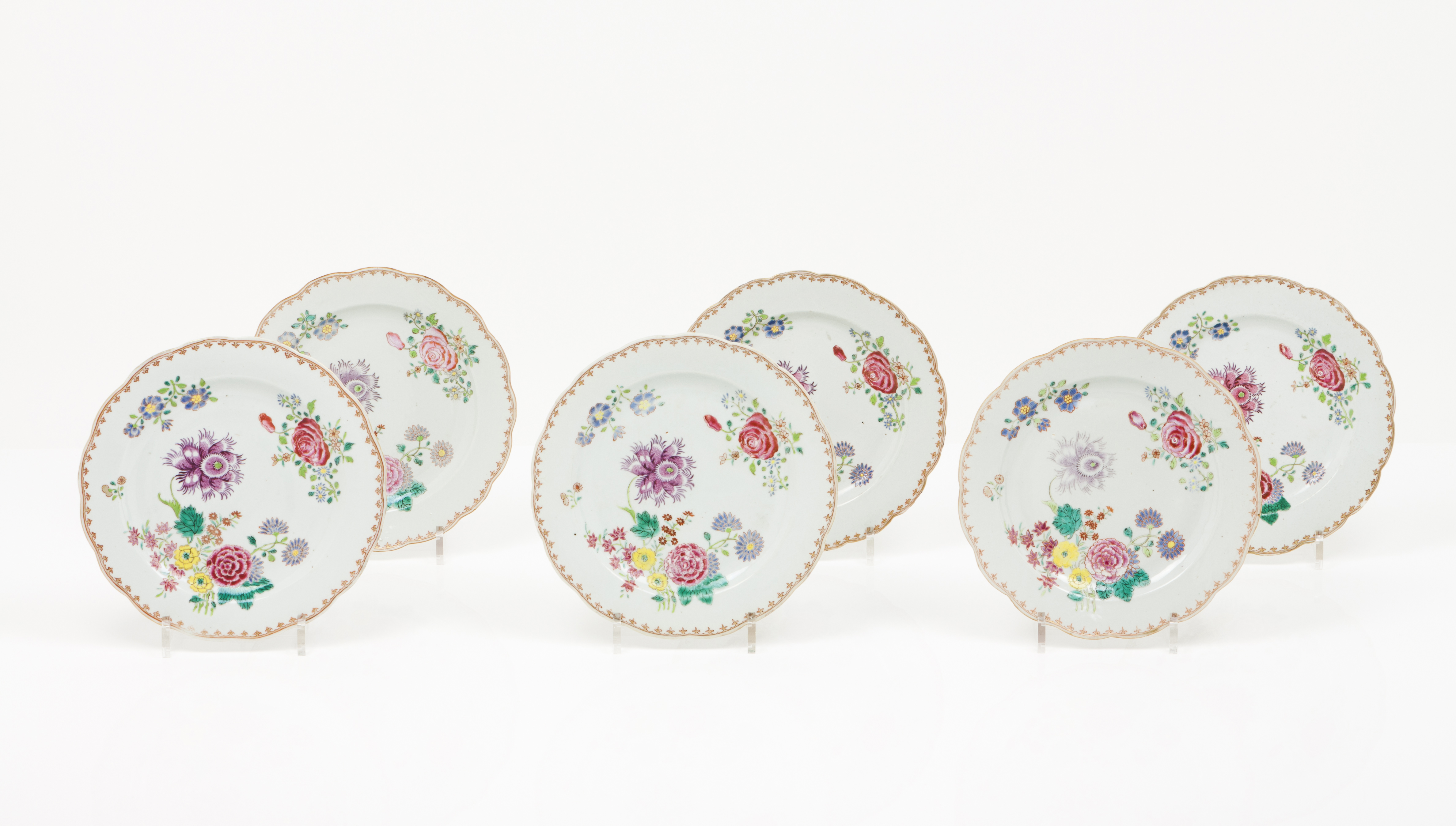 Decoração policromada com esmaltes da Família Rosa representando motivos florais